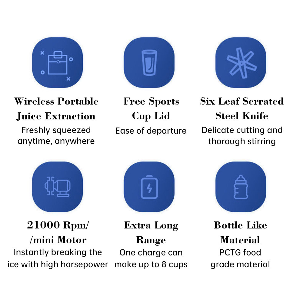 Portable Electric Blender Mini Fruit Juicer Rechargeable Juicer Cup USB Wireless Automatic Squeezer