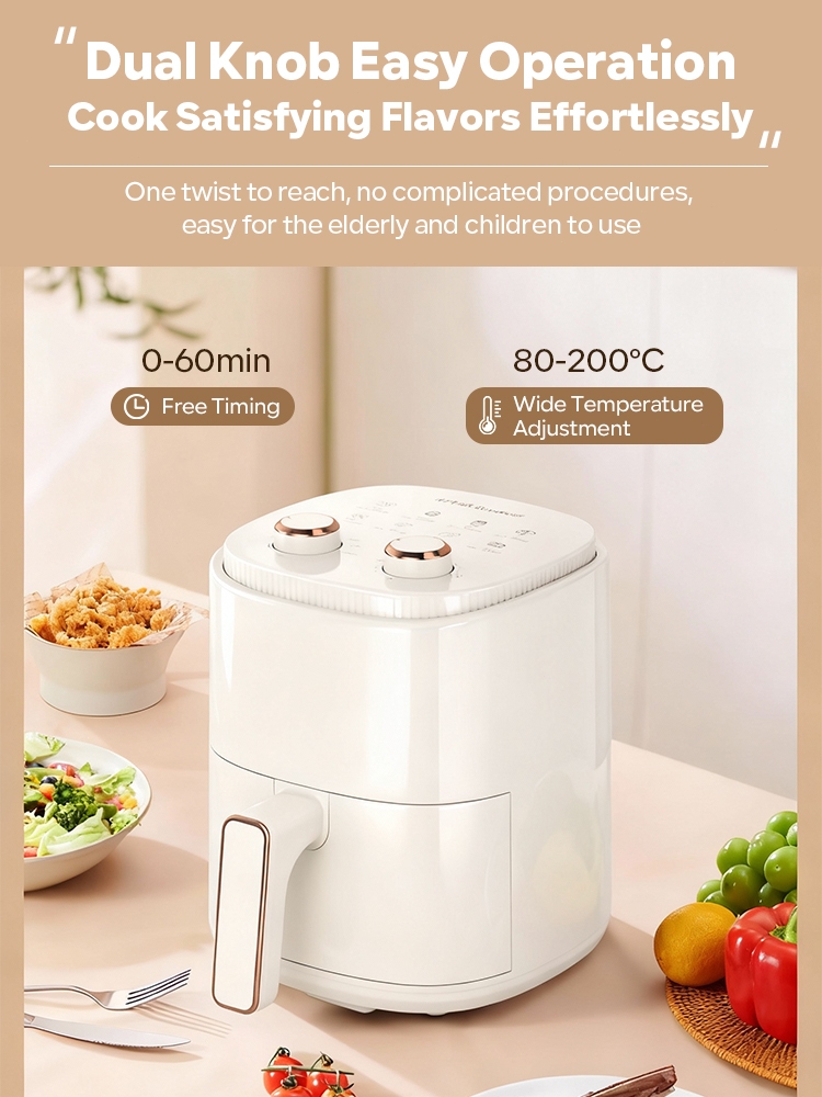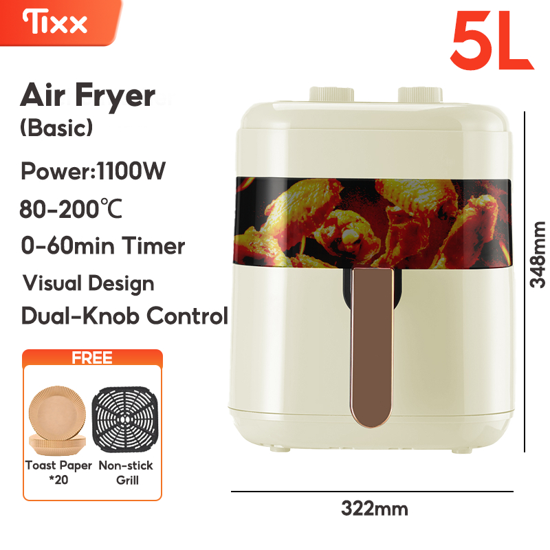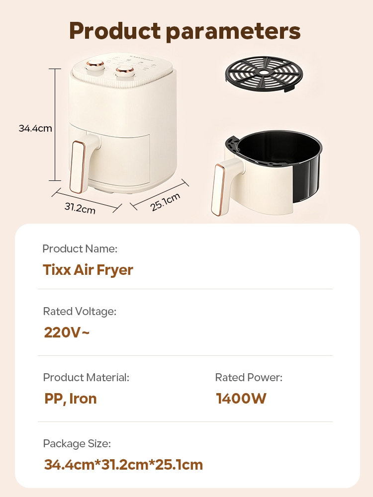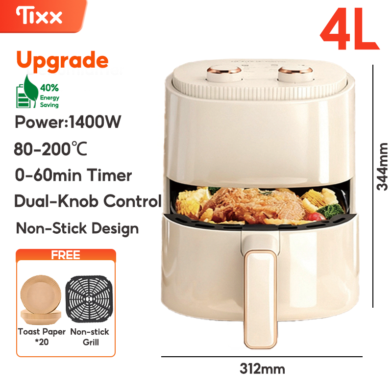 Tixx&XTTX 4L Air Fryer 1400W Dual-Knob Timer & Temperature Control Non-Stick Oil-Free Cooking