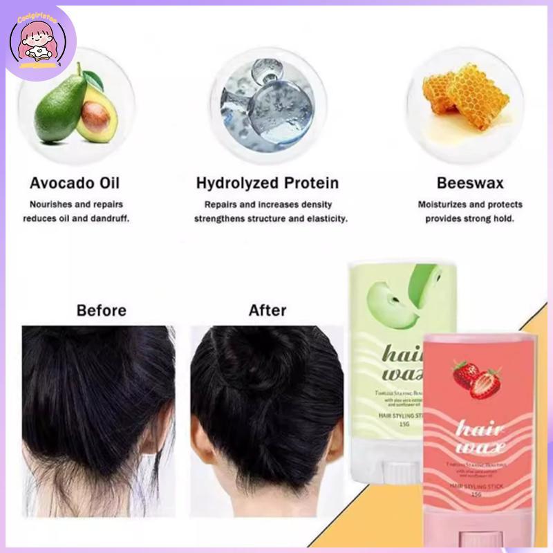[Cool] Strawberry Hair Gel Sti Aloe Vera Hair Wax Pomade Long Lasting 15g Frizz Fixed Fluffy Hair Tools Hair Wax Sti Children Men Women Styling Tools PH