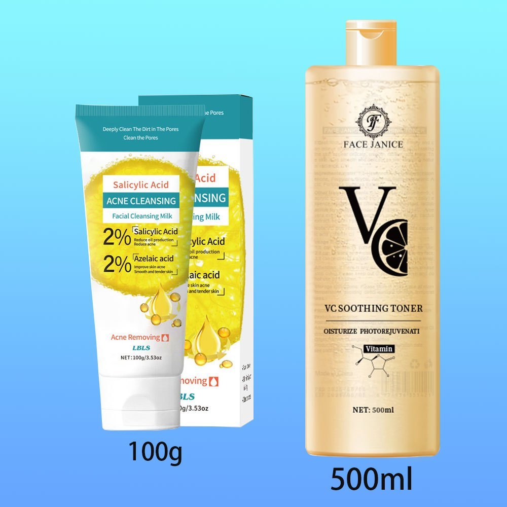 Buy 2 Get 2 Free! Whitening Moisturizing VC Toner 500ML & Salicylic Acid Cleanser 100g Bundle