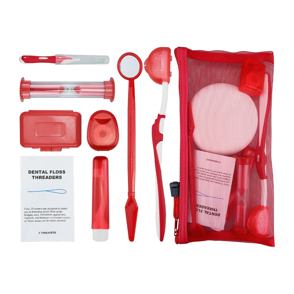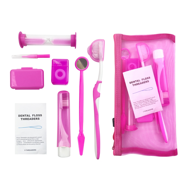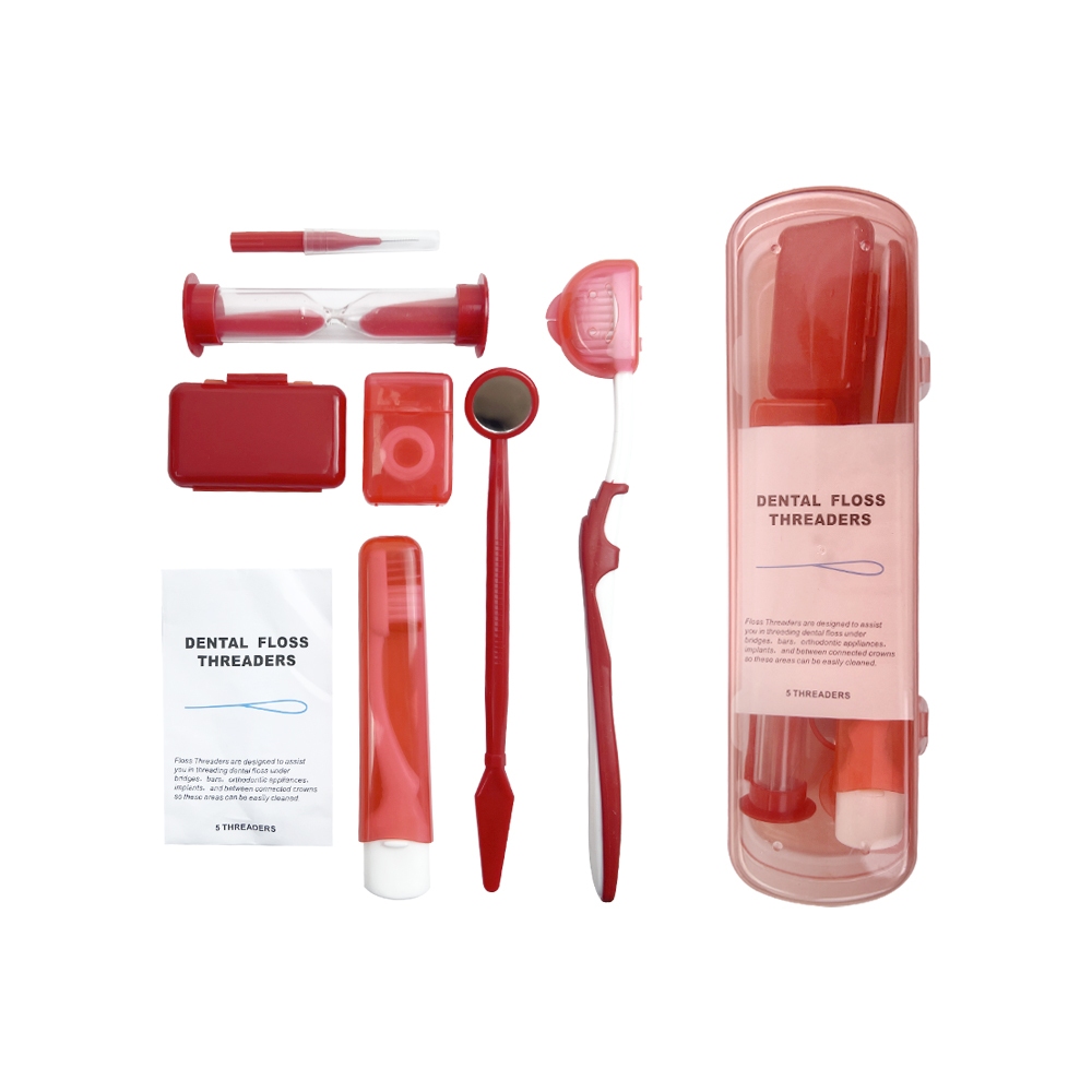 Toothbrush Care Set - 8-piece box with toothbrush dental floss wax and oral mirror