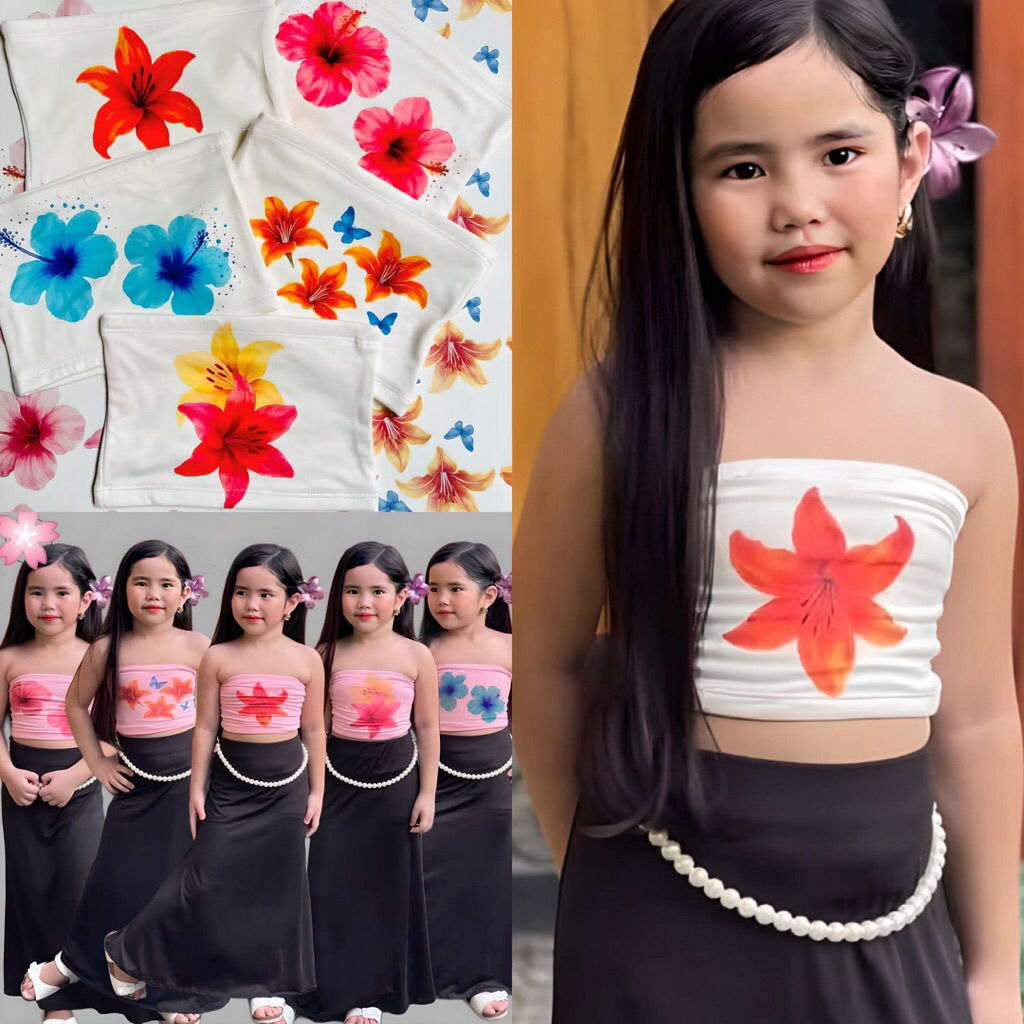 SMFM KIDS Floral Tube Crop Top Double Lining Bulaklakin Pang Beach 3y/o - 5y/o Sublimation Print