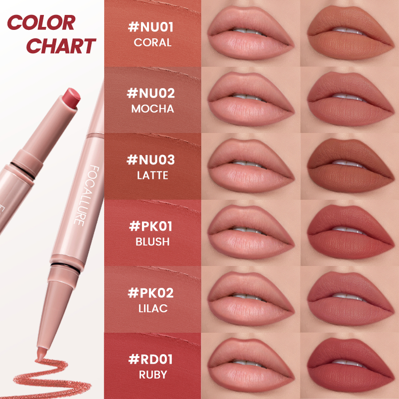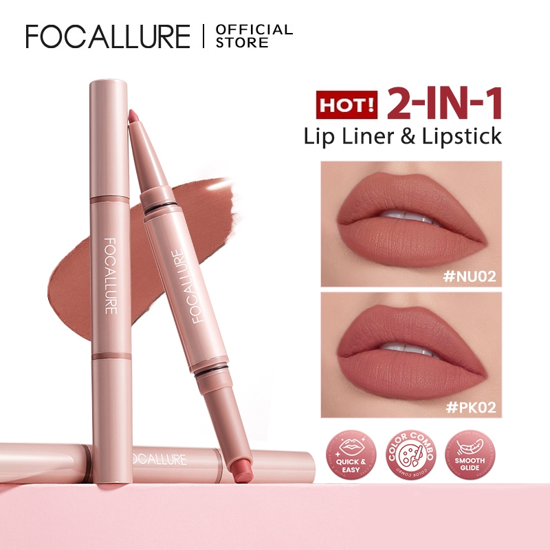 Focallure Fuller Sculpt Lip Liner Lipstick 2-in-1 Creamy Smooth Easy Quick Pigmented Long Wear