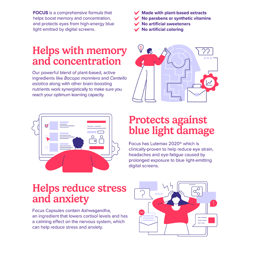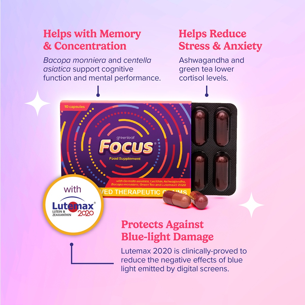 Focus Capsules - Natural Brain, Memory and Eye Supplement with Bacopa and Ashwagandha - 10 Count