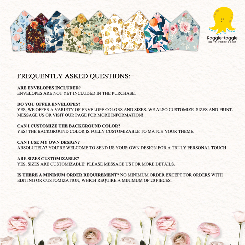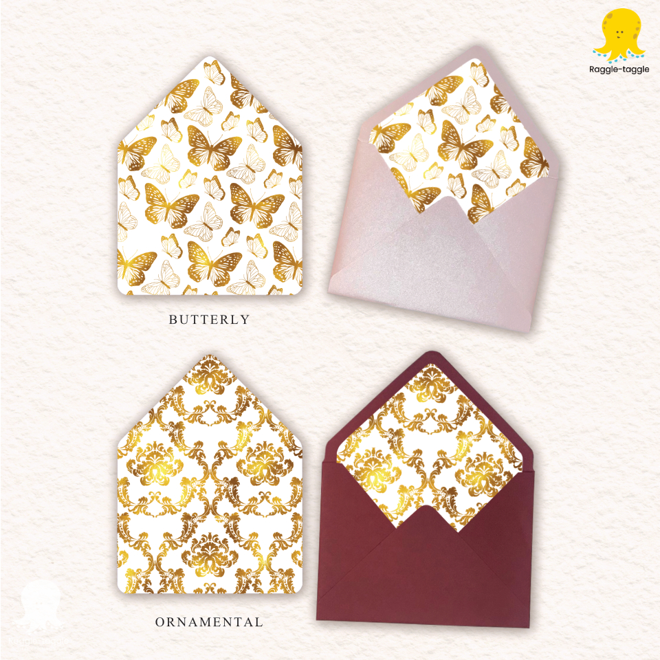 Foil Metallic Print Liners for A7 Baronial Envelopes. For Invitations Wedding, Birthday, Events