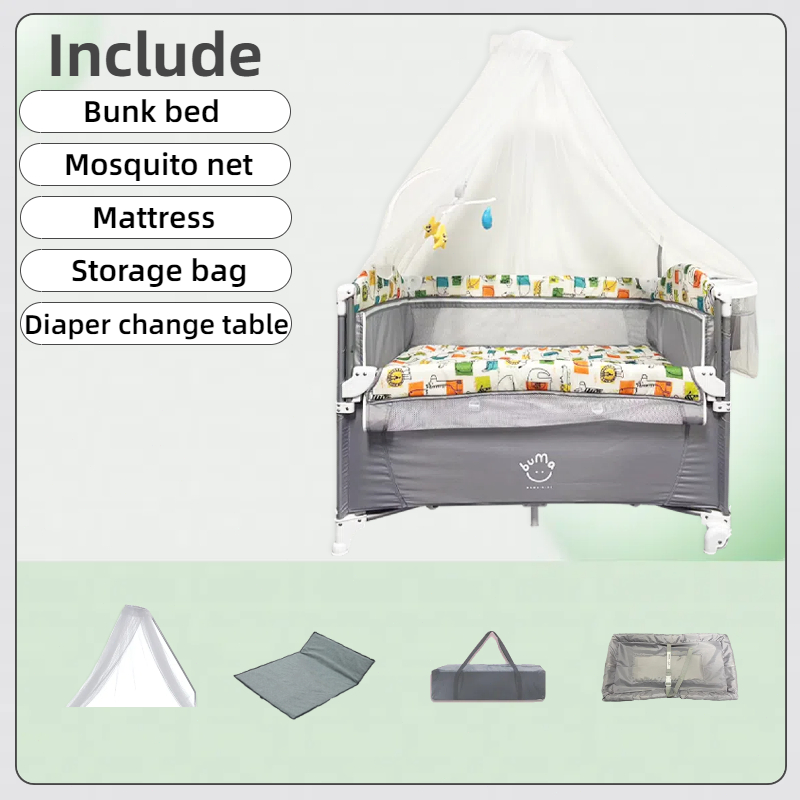 Foldable Baby Crib and Playpen 2 layer (with mosquito net storage bag) Crib Toddler Travel Cot