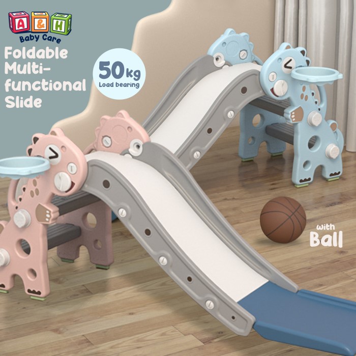 Foldable Baby Indoor Multi-functional Slide with Basketball Hoop Playground