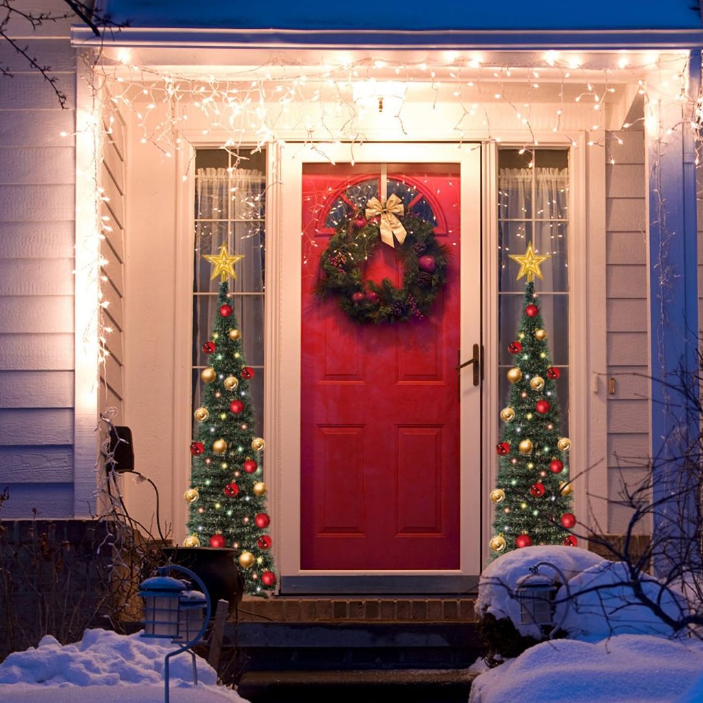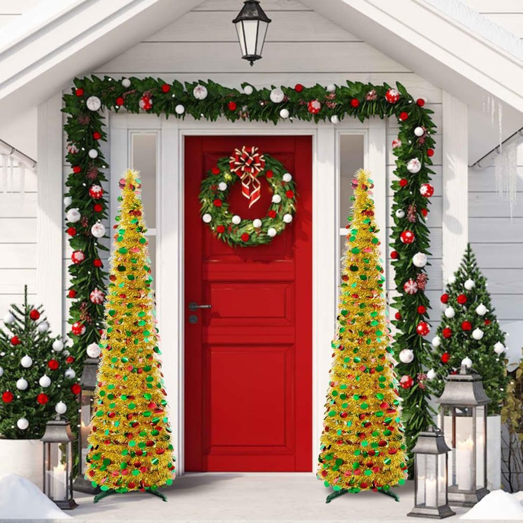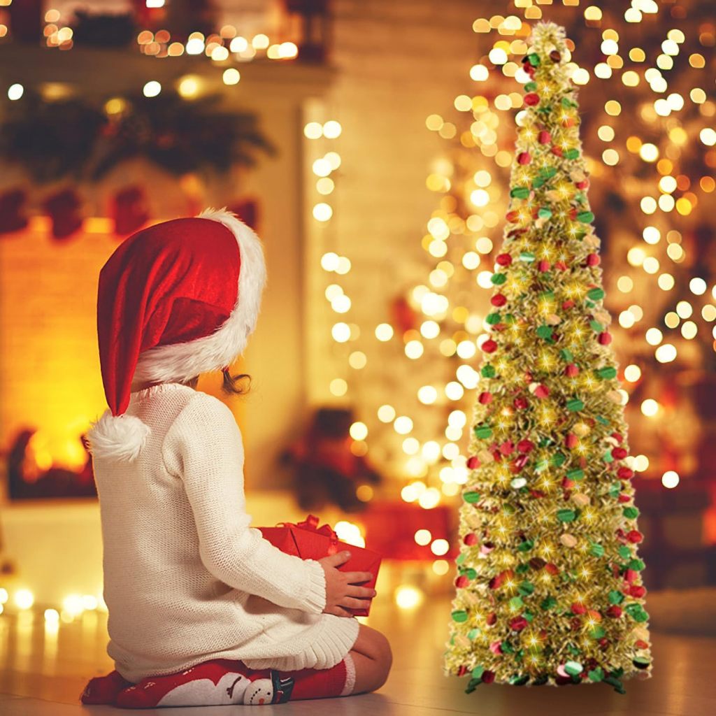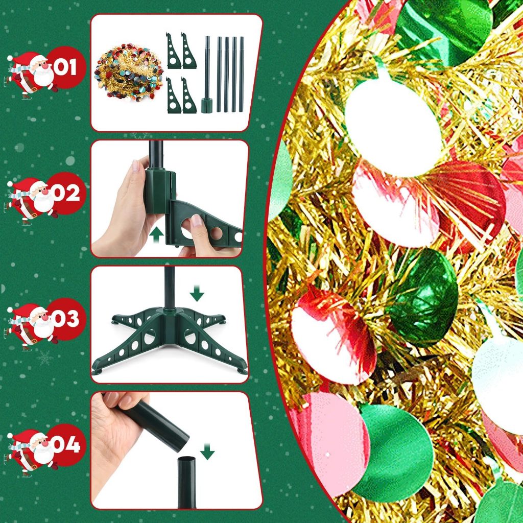 Foldable Christmas Tree Pop Up Artificial Tinsel Christmas Tree with Snowflake Ornaments 150cm