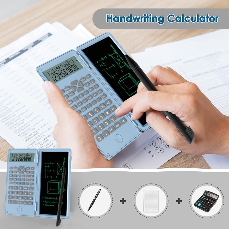 Foldable Digits Calculator 6 Inch Scientific Digital Graphic Tablet LCD Writing Pad with Stylus Portable Calculators with Notepad Display Deskt