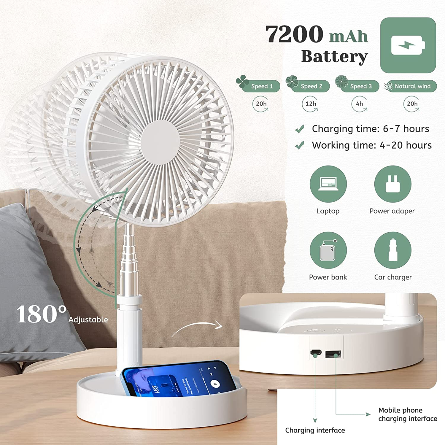 Foldable Fan USB Rechargeable Mini Electric Fan Portable Desk Fans Floor Fan Electric Fan Air Cooler