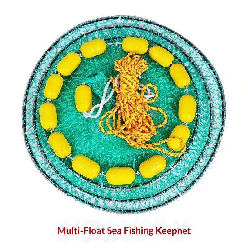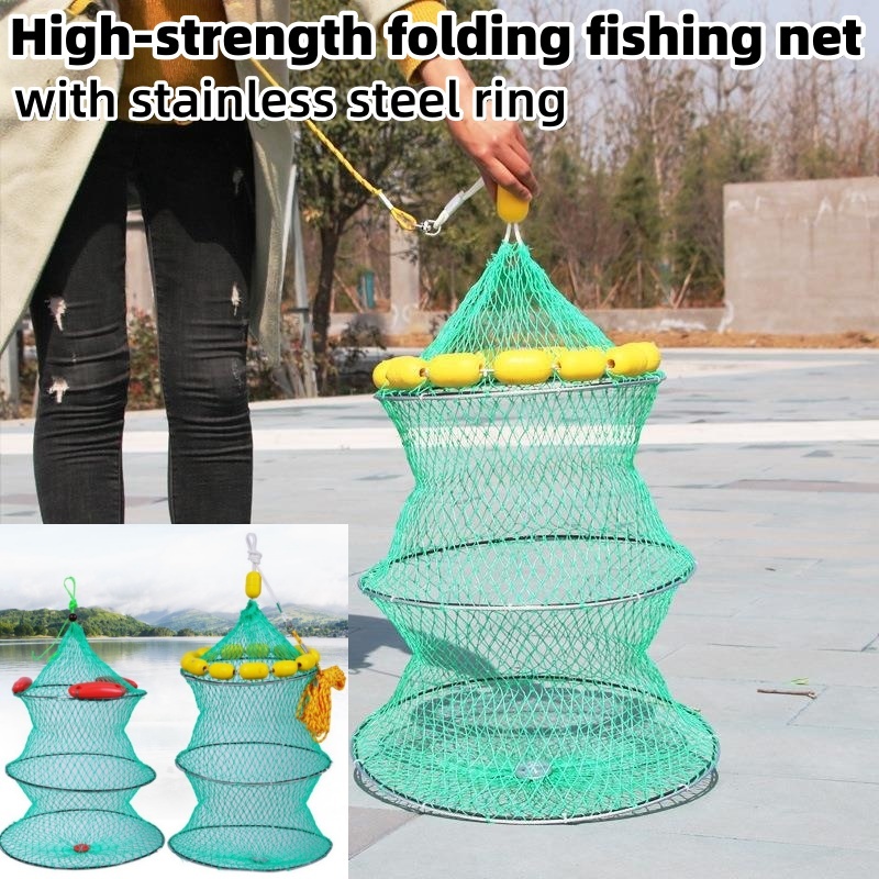Foldable Fish Cage Secure Dual Fish Rings Nylon Fishing Net Folded Catching Floating Cage Fish Net