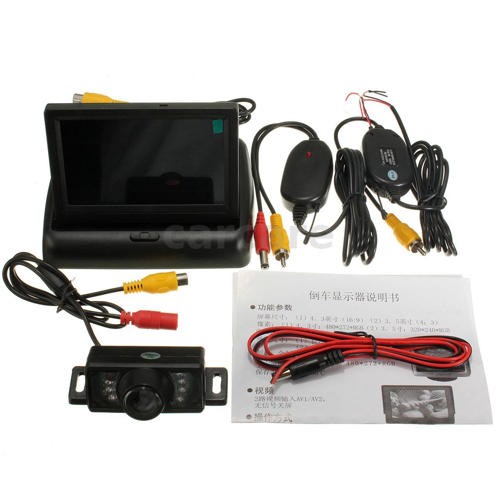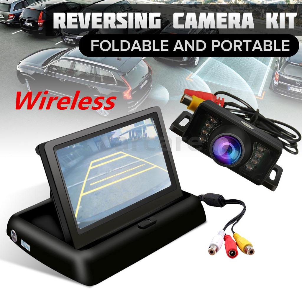 Foldable LCD 4.3'' Monitor Mirror Wireless IR Rearview Parking Backup Camera New carcare