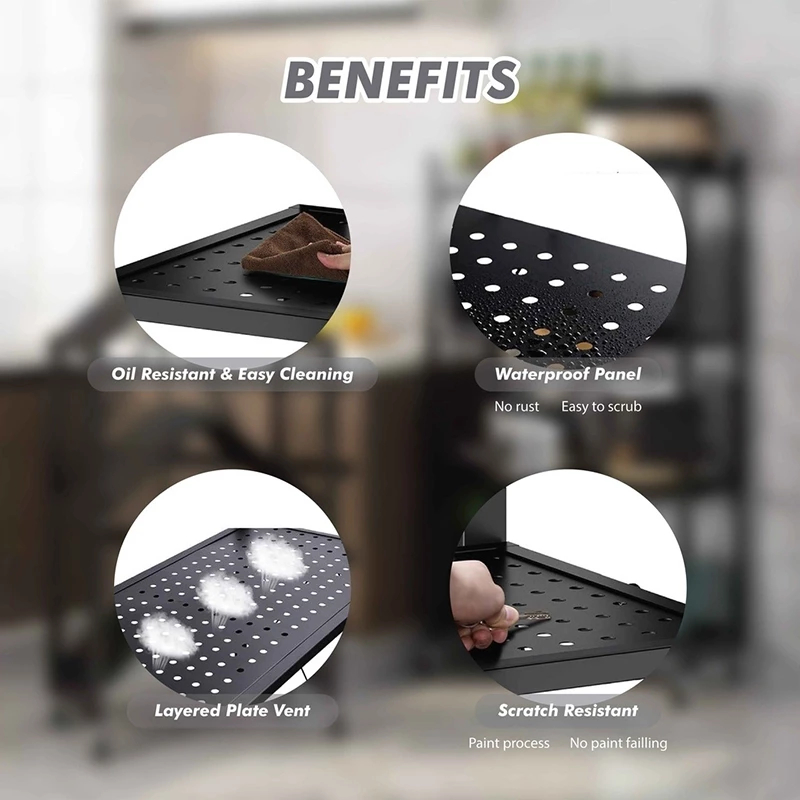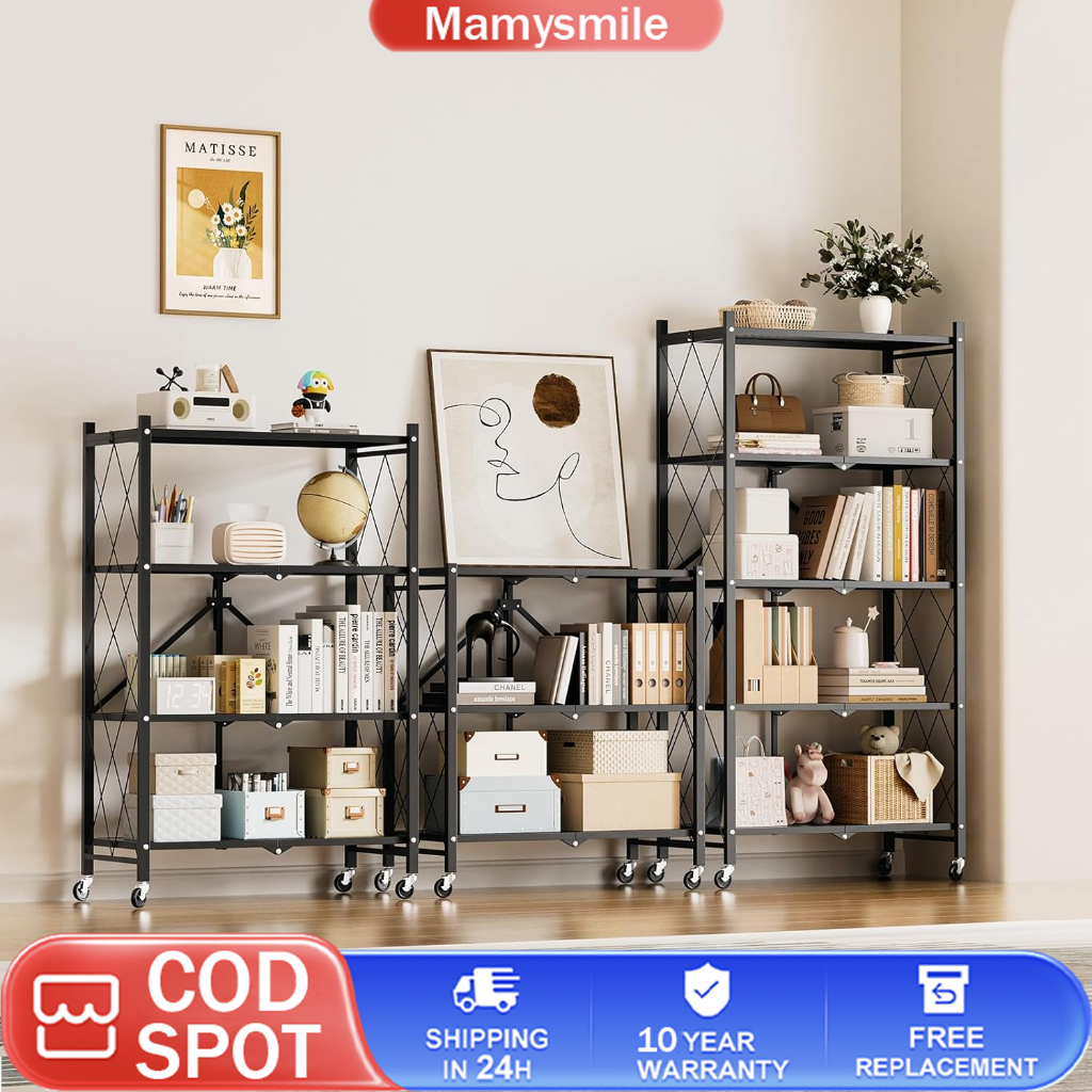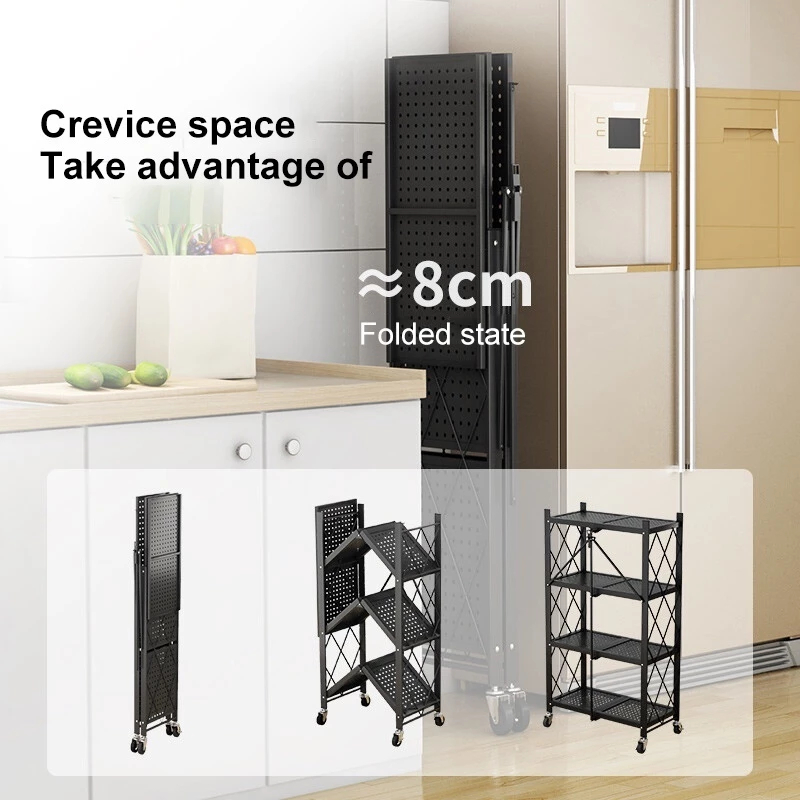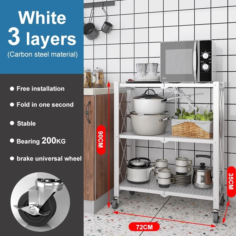 Foldable Rack 3/4/5 Layer Kitchen Rack Shelves Wheels Shelf Steel Folding Shelf Shelves Heavy Duty
