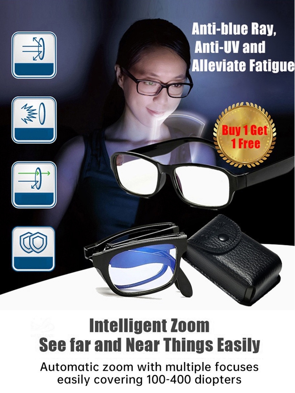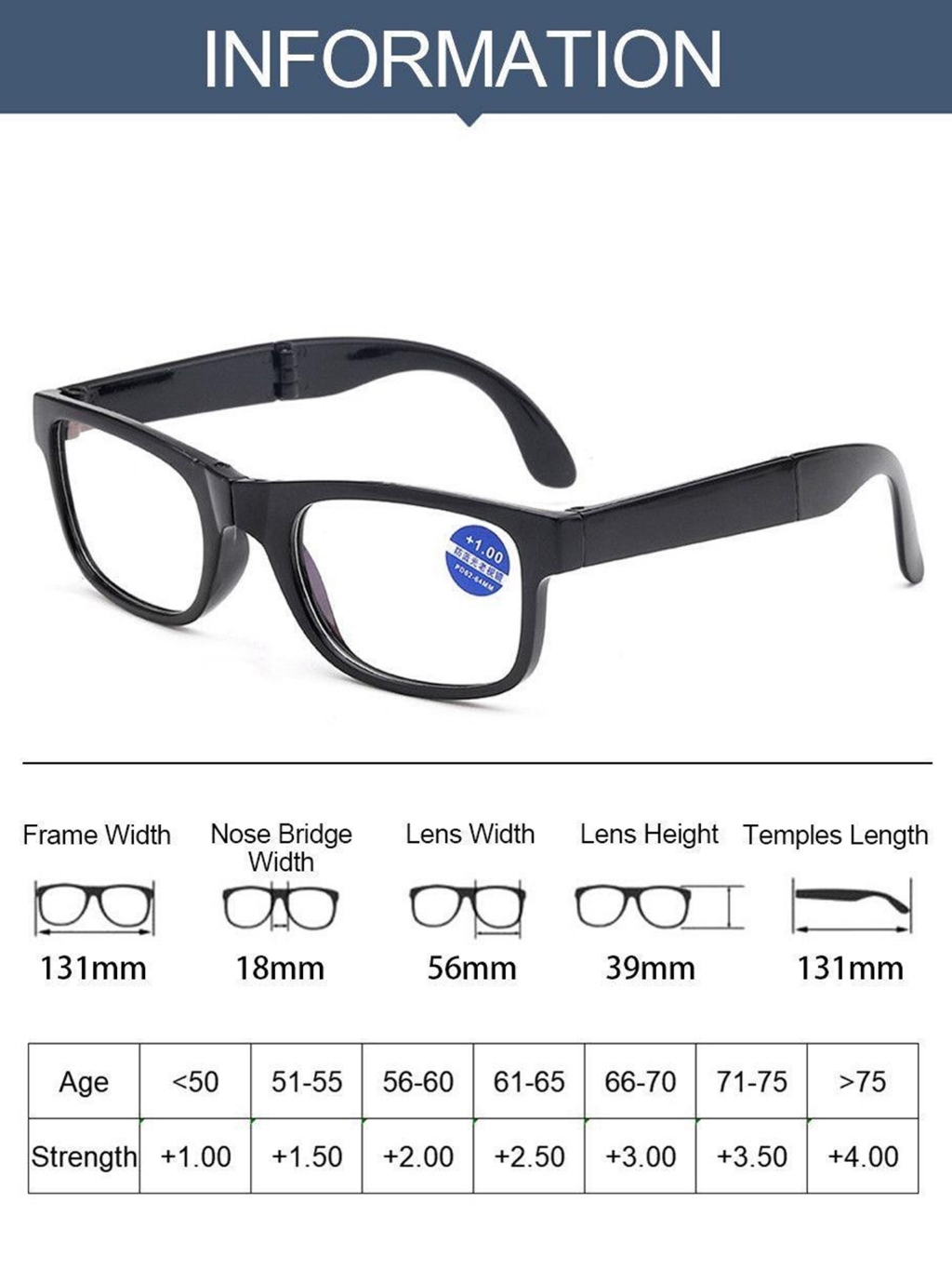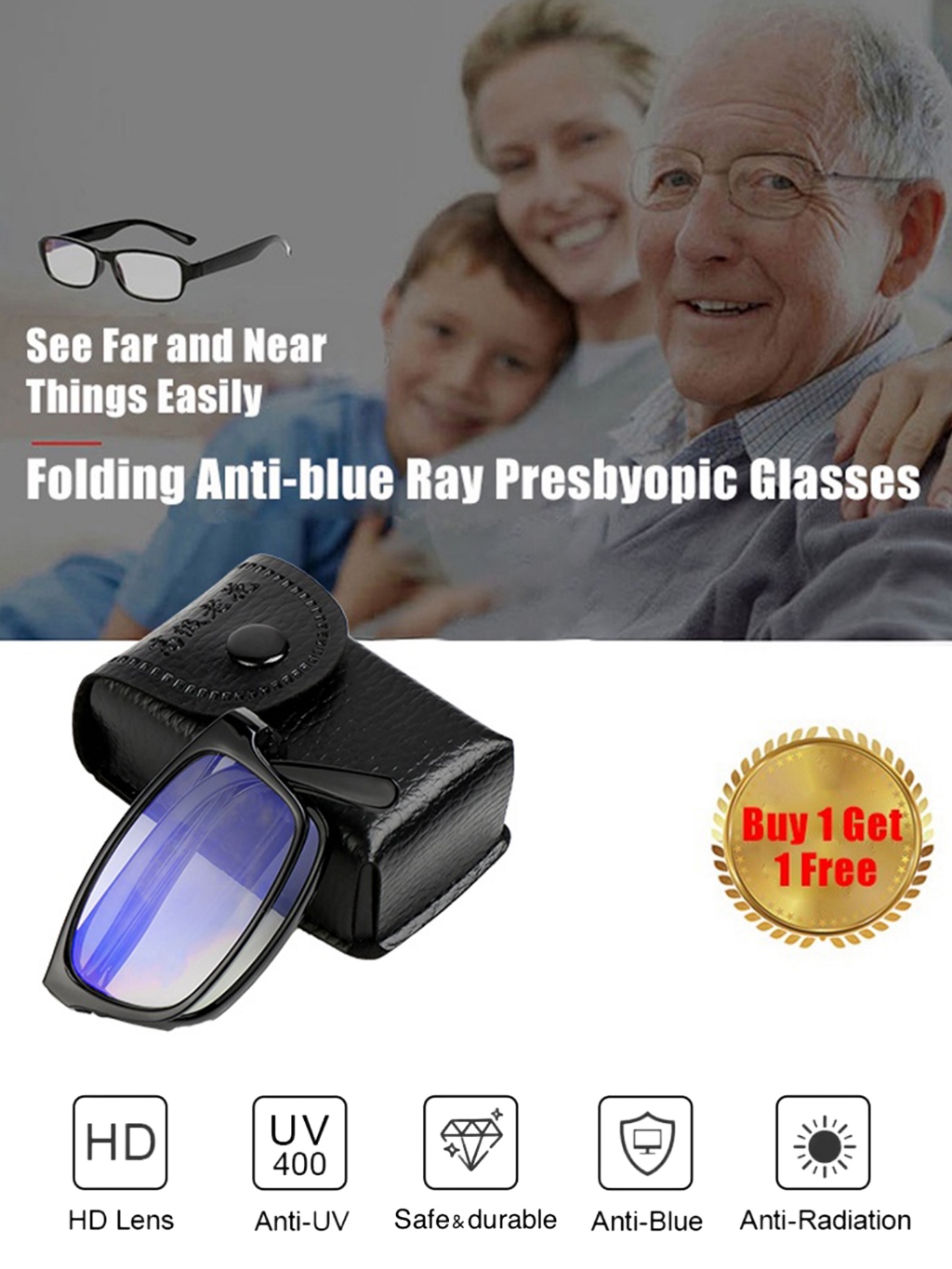 Foldable Reading Glasses with Free Case Men Anti-blue Light Folding Presbyopic Eyewear for Farsight