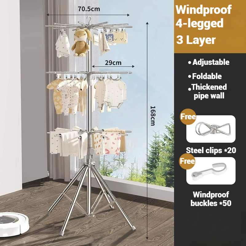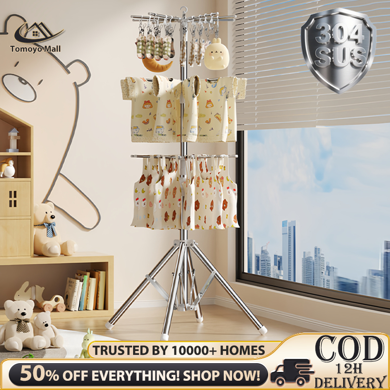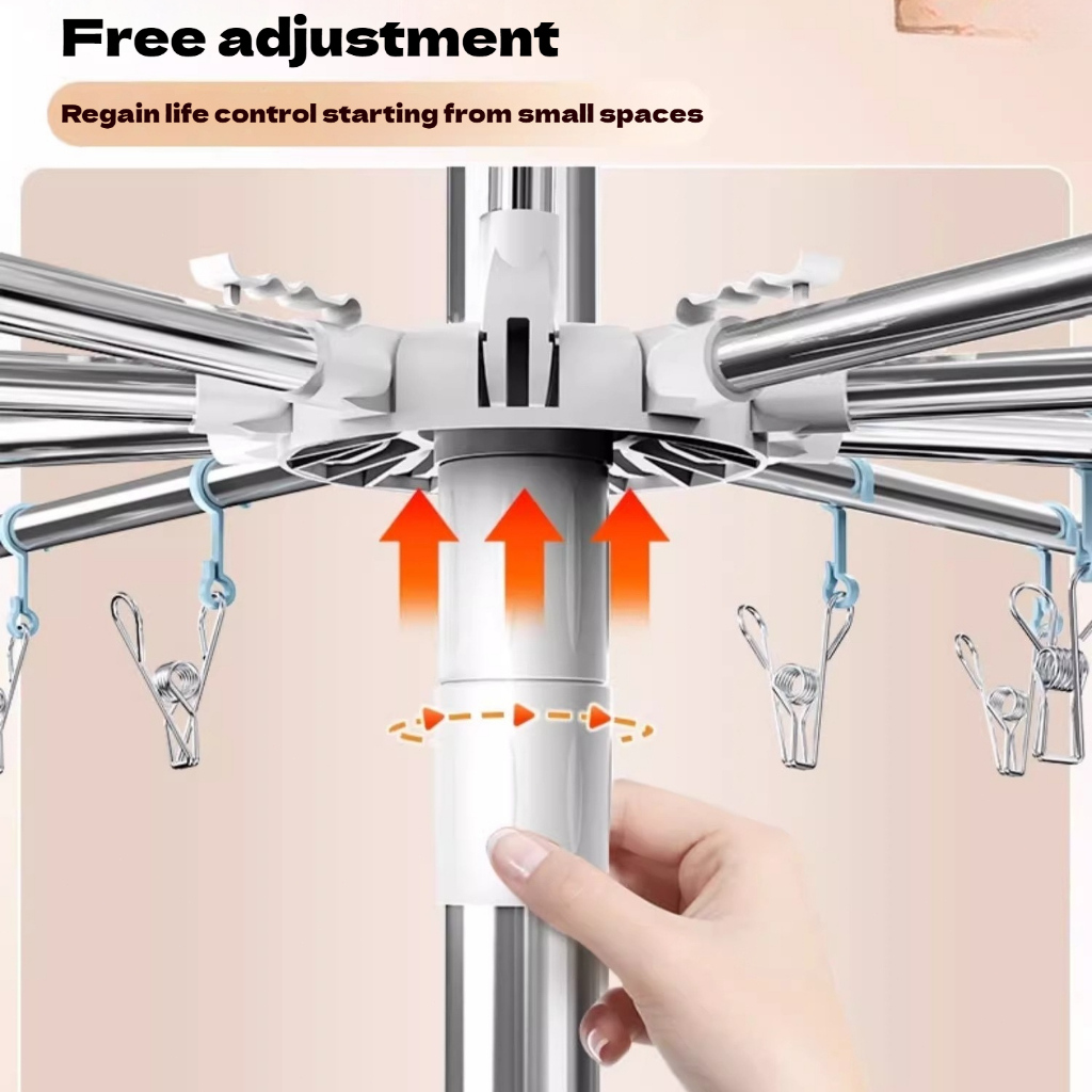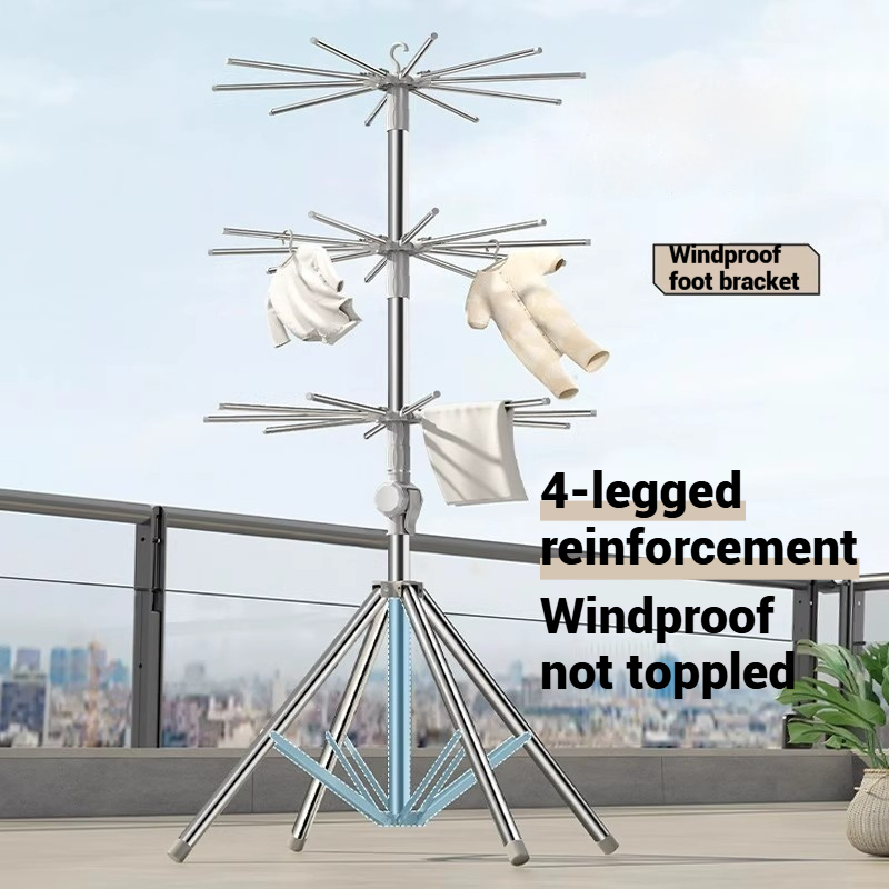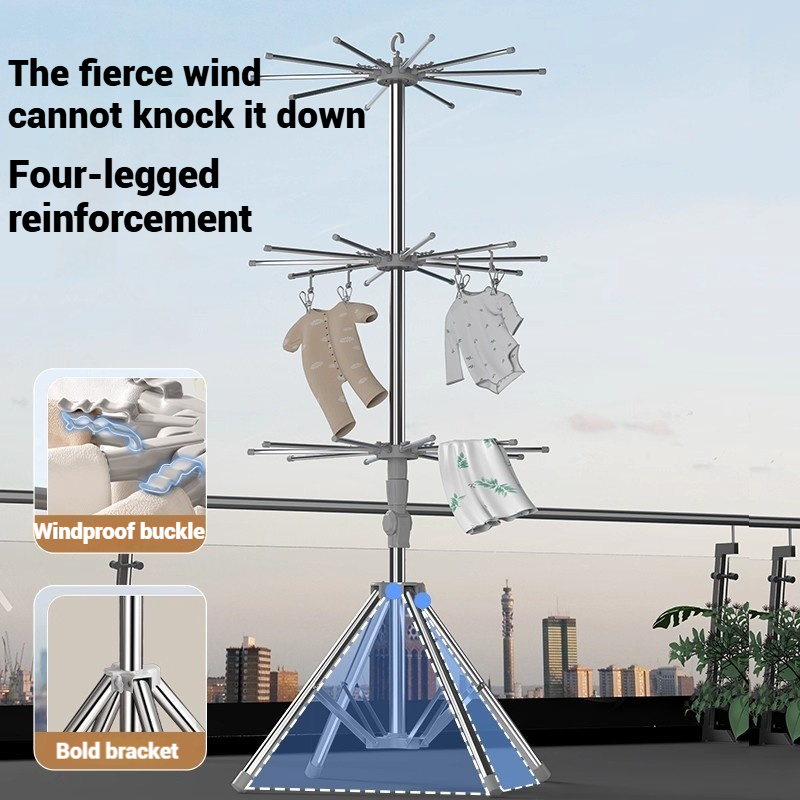 Foldable Sampayan Stainless Steel Baby Clothes Drying Rack 360° Rotating Clothes Rack Indoor Outdoor