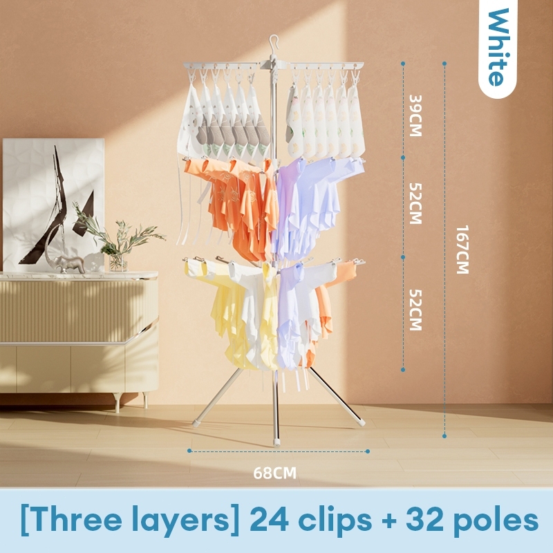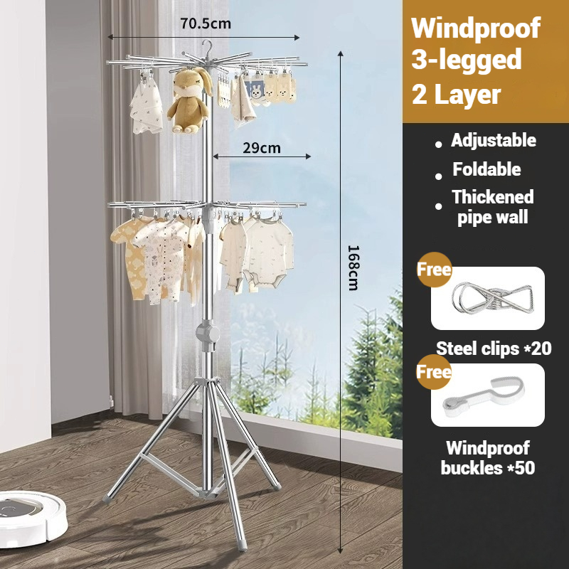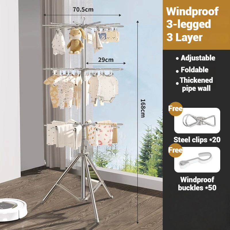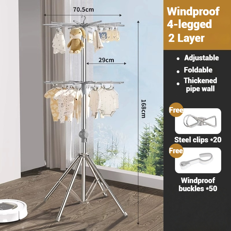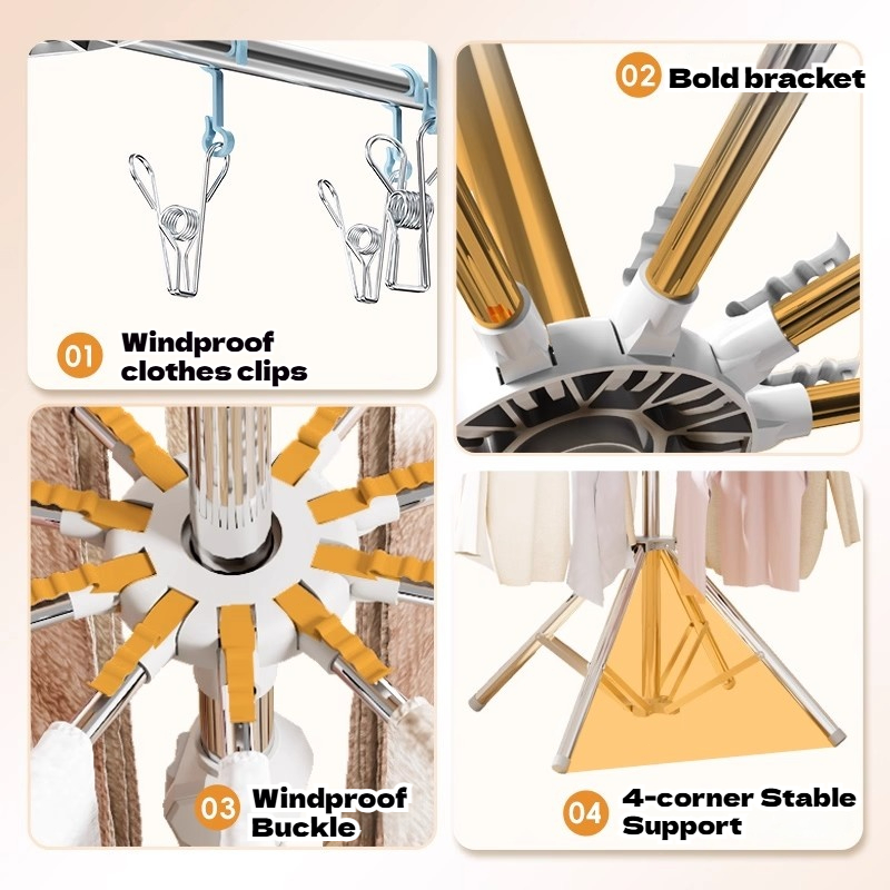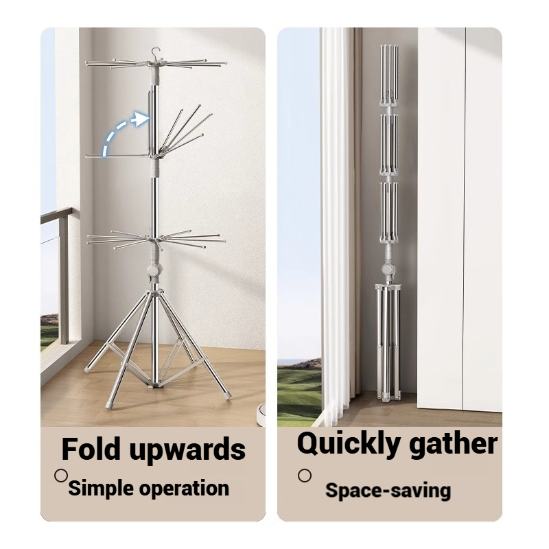 Foldable Sampayan Stainless Steel Baby Clothes Drying Rack 360° Rotating Clothes Rack Indoor Outdoor