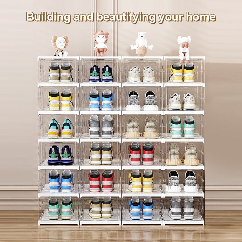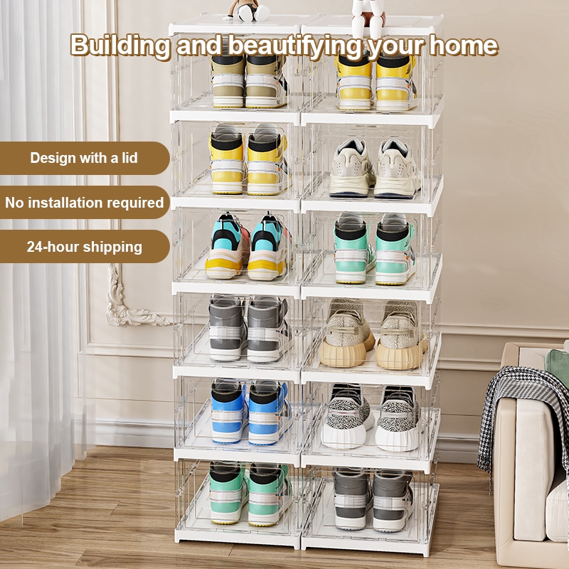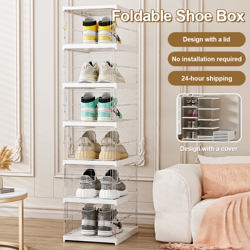 Foldable Shoe Box Multifunctional Shoe Storage Box Set Clear Stackable Shoes Rack Shelf cabinet