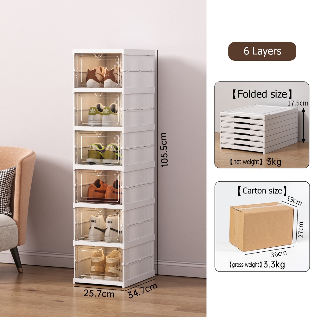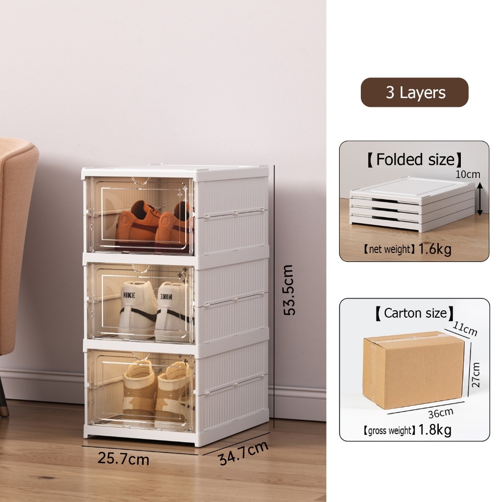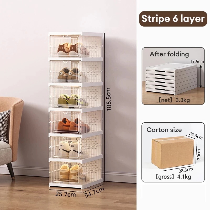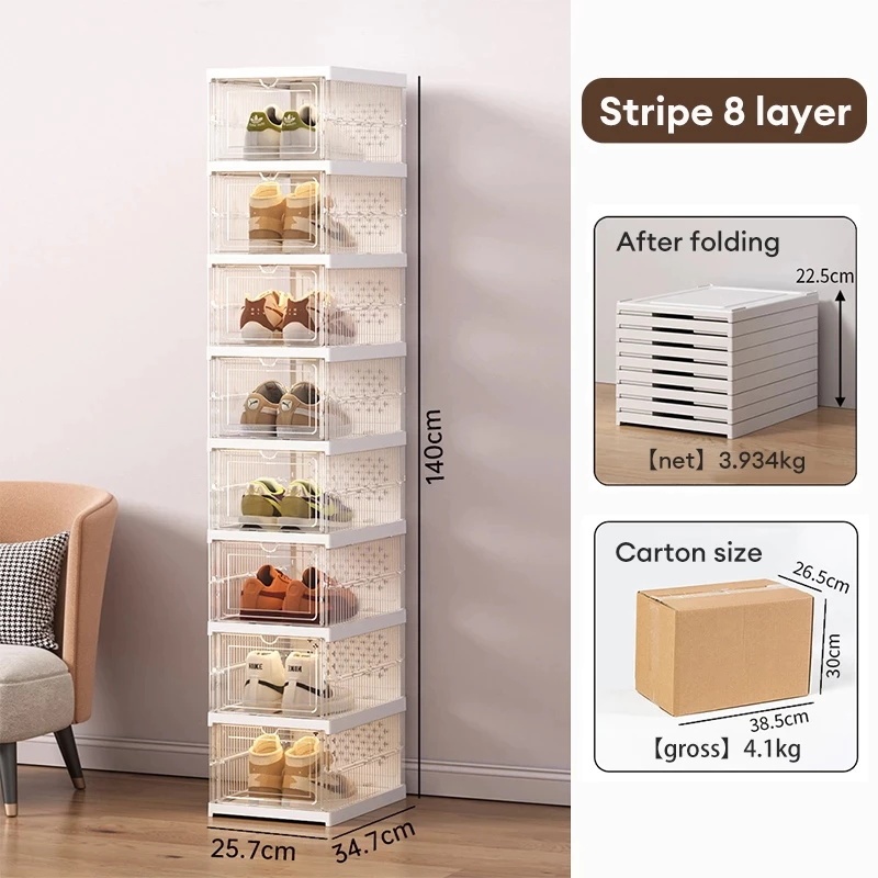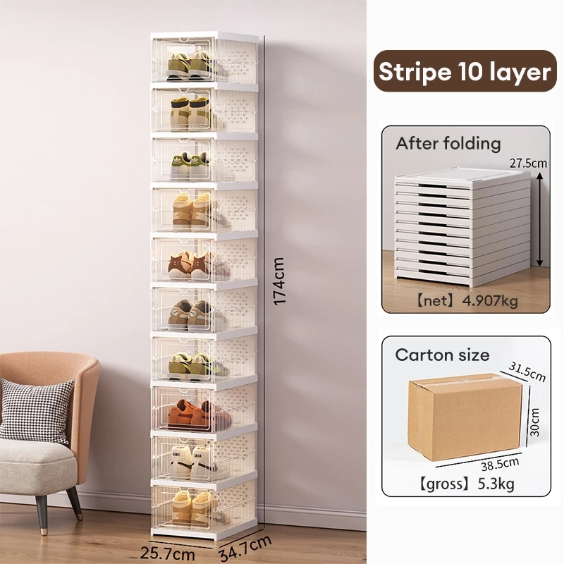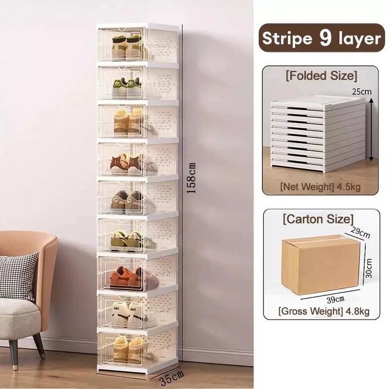 Foldable Shoe box 3-11 Layers Free Installation Shoe rack Dustproof acrylic shoe storage box