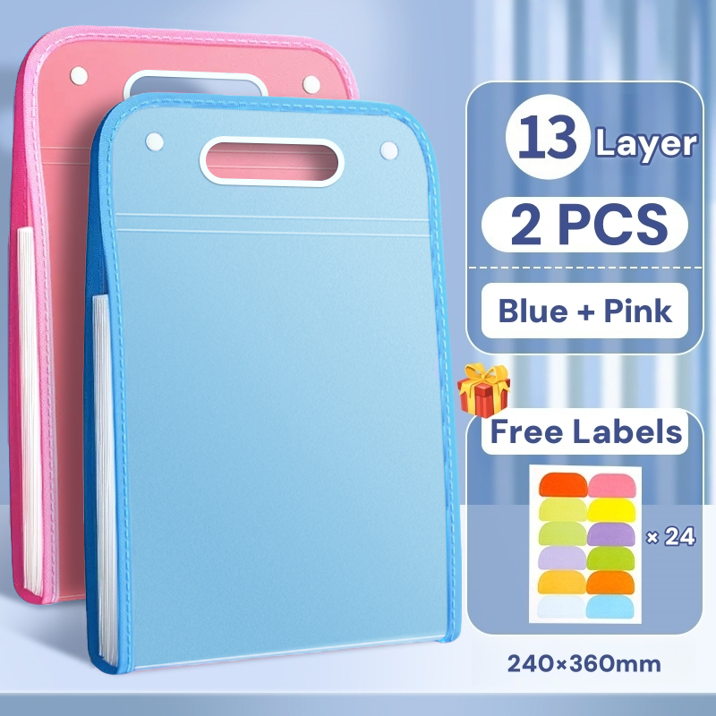 13-Layer Handle Folder Long File Organizer Expanding File Folder Portable Folder Bag With Handle