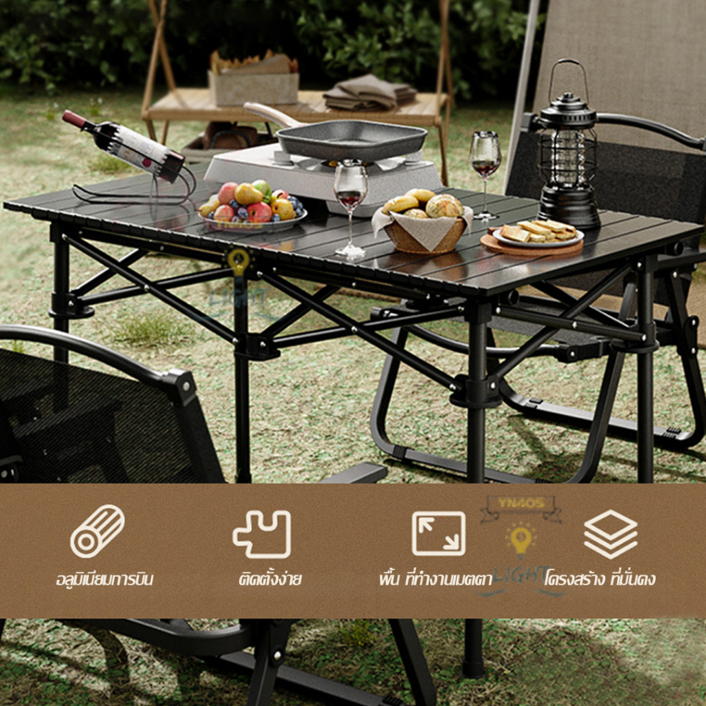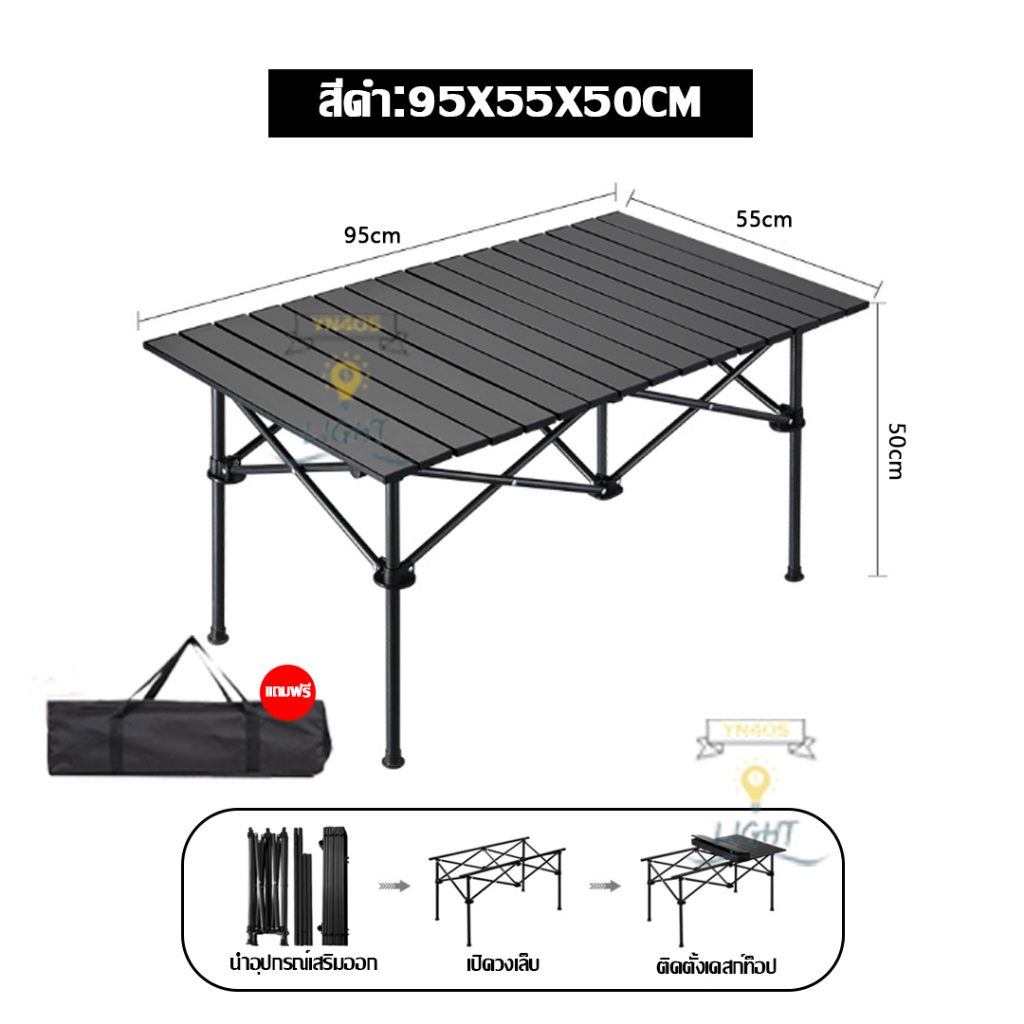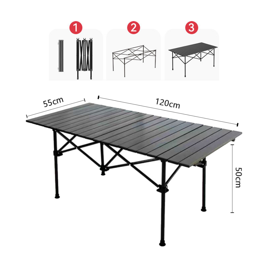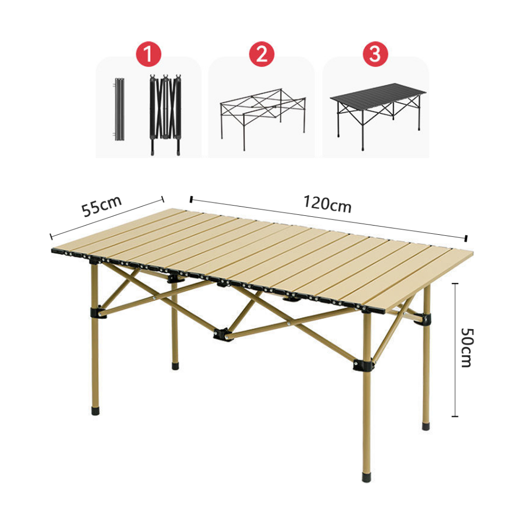 Folding Camping Picnic table Aluminum Is Easy To Carry Black And Yellow. There Are 3 Sizes Choose From.