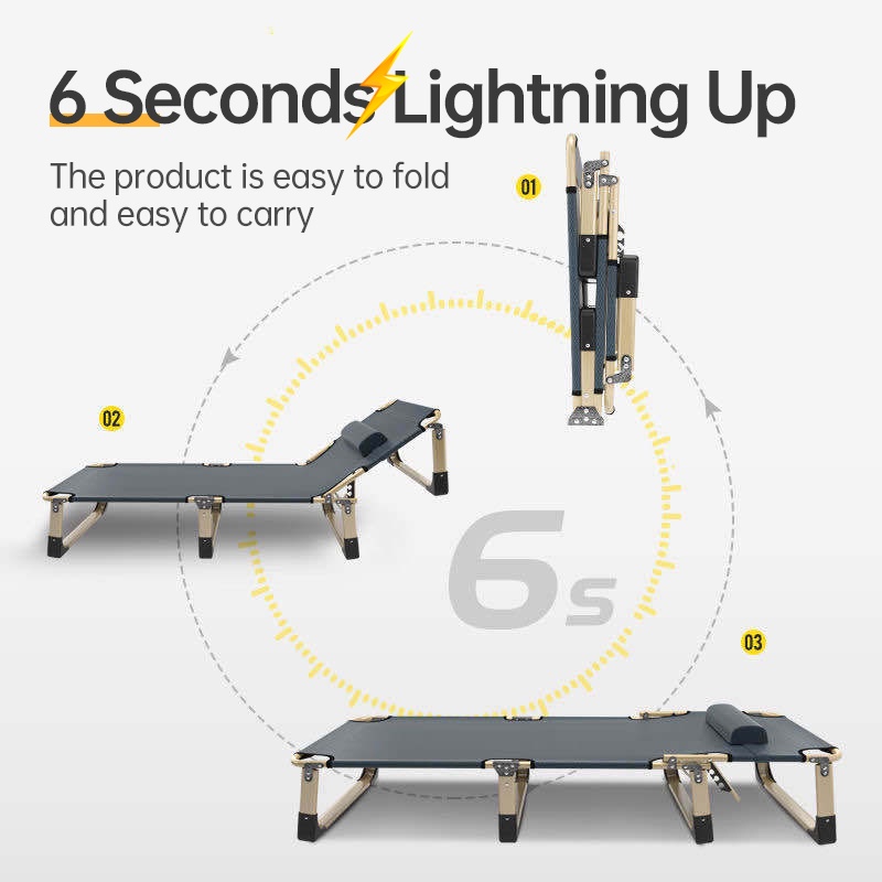 Folding Chair Bed With Foam Foldable Breathable Oxford Cloth 300kg Load-bearing Outdoor Reclining