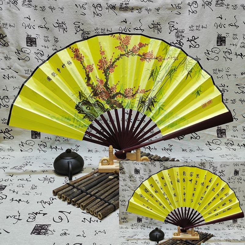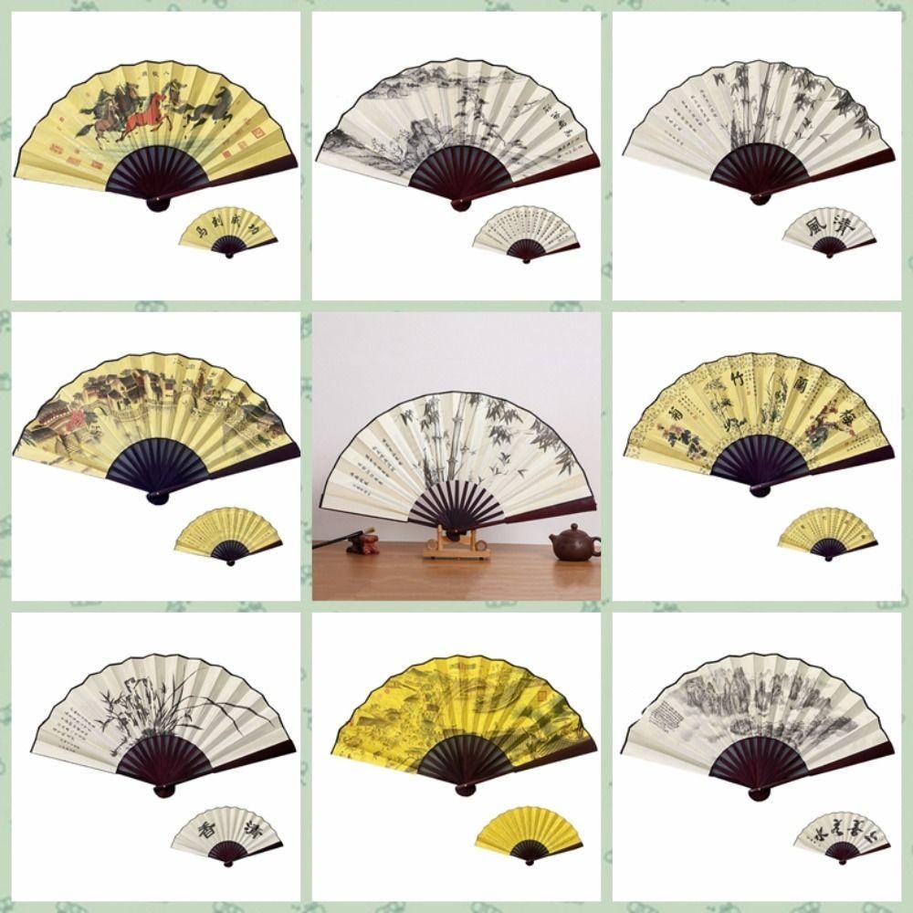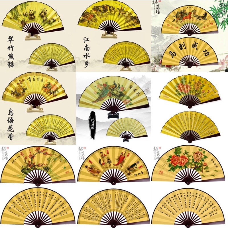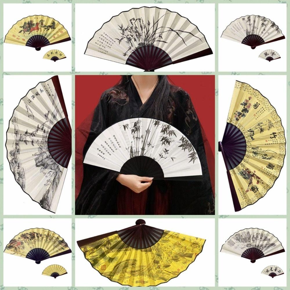 Folding Fan Bamboo Fabric Hand Fans with Chinese Traditional Painting for Decorations and Gifts