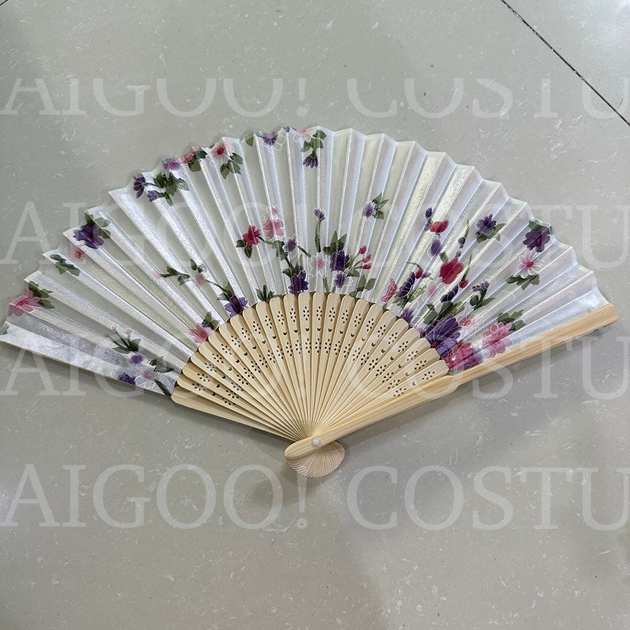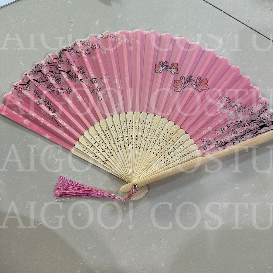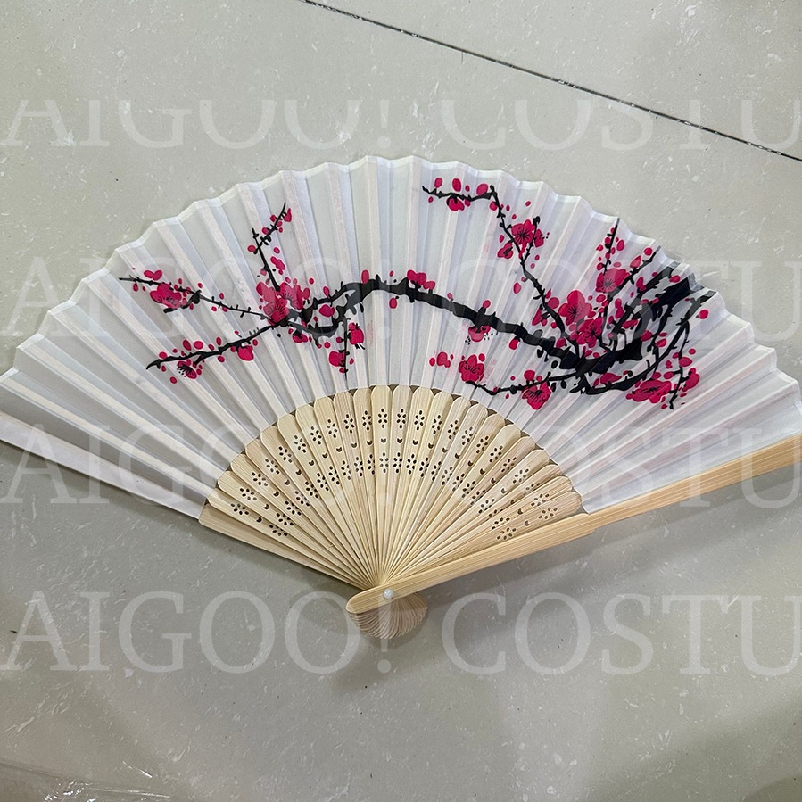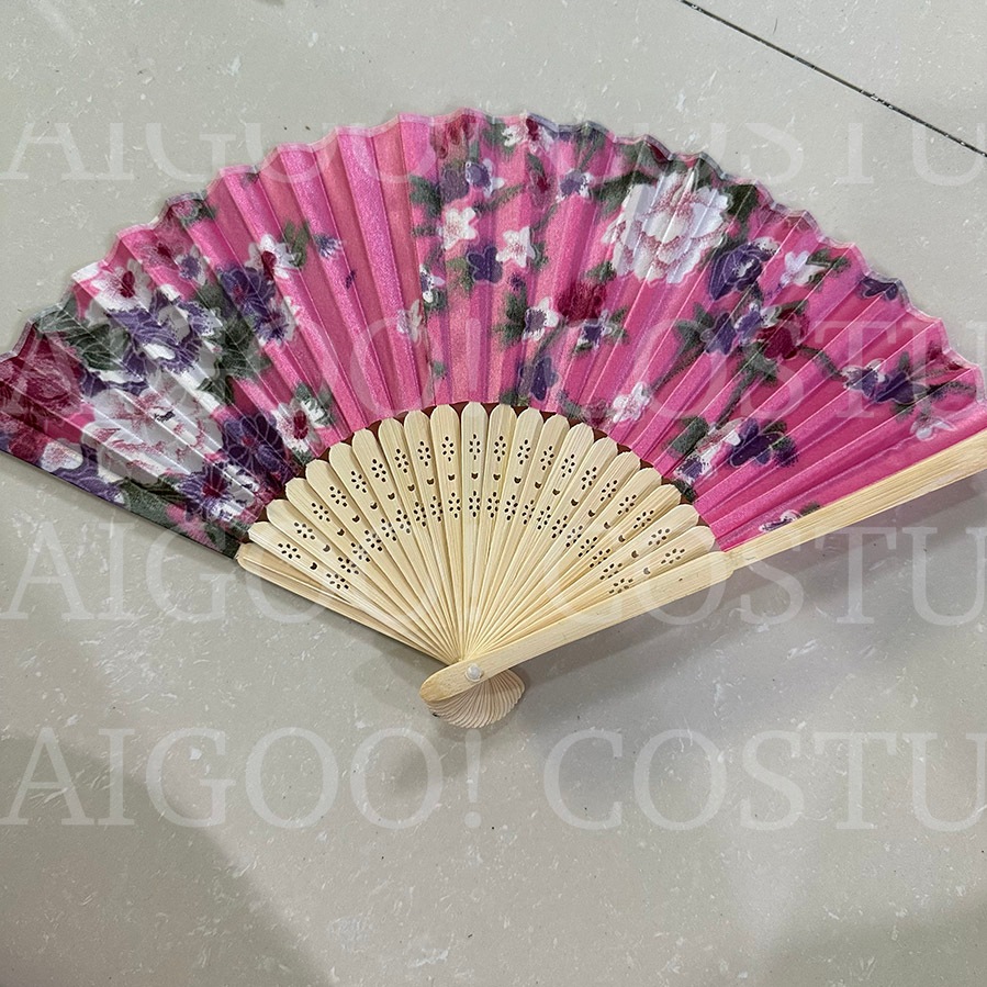 Folding Fan Prop Japanese Chinese United Nations Asian Costume Floral Sakura Bamboo Fan