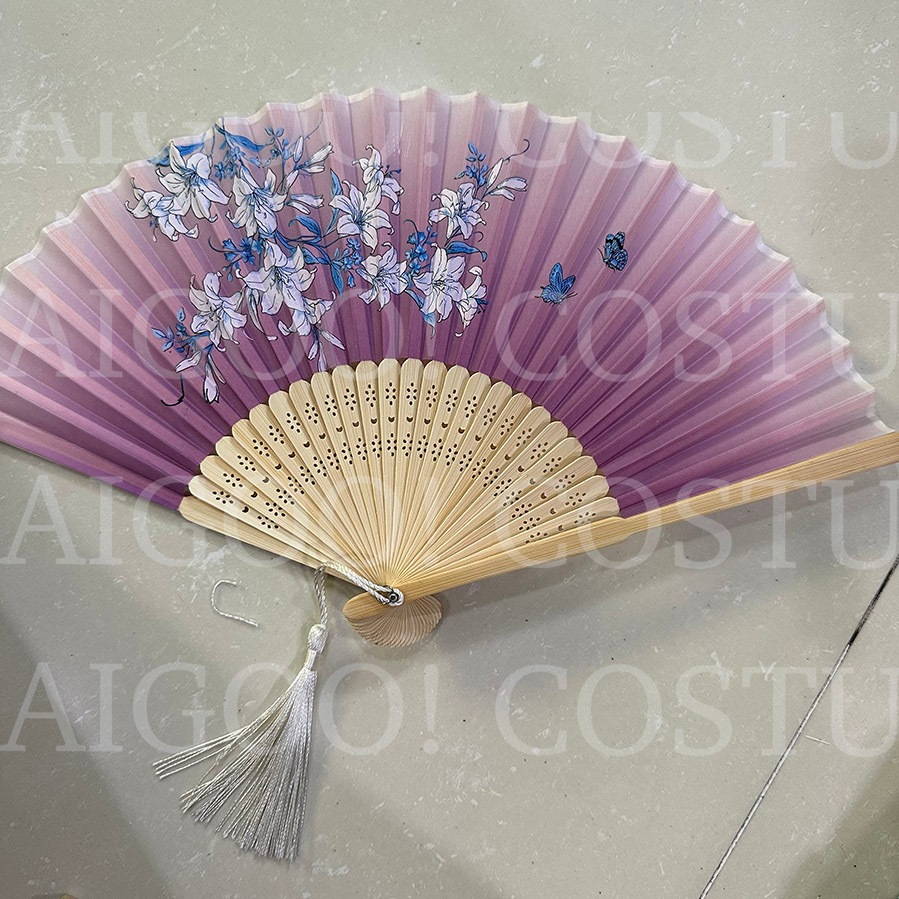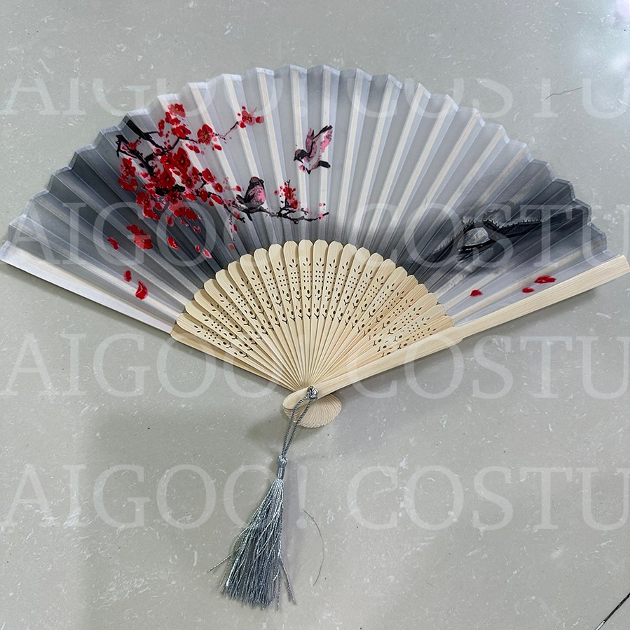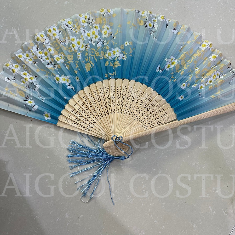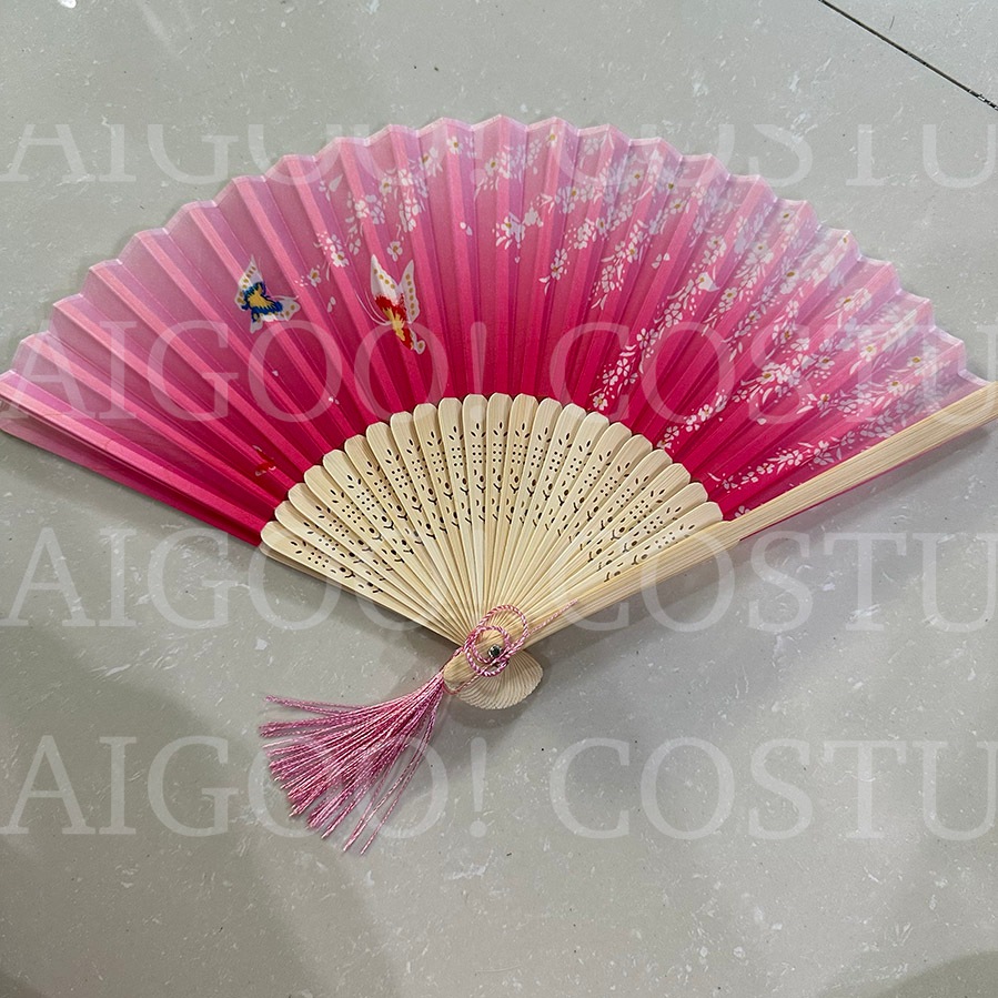 Folding Fan Prop Japanese Chinese United Nations Asian Costume Floral Sakura Bamboo Fan