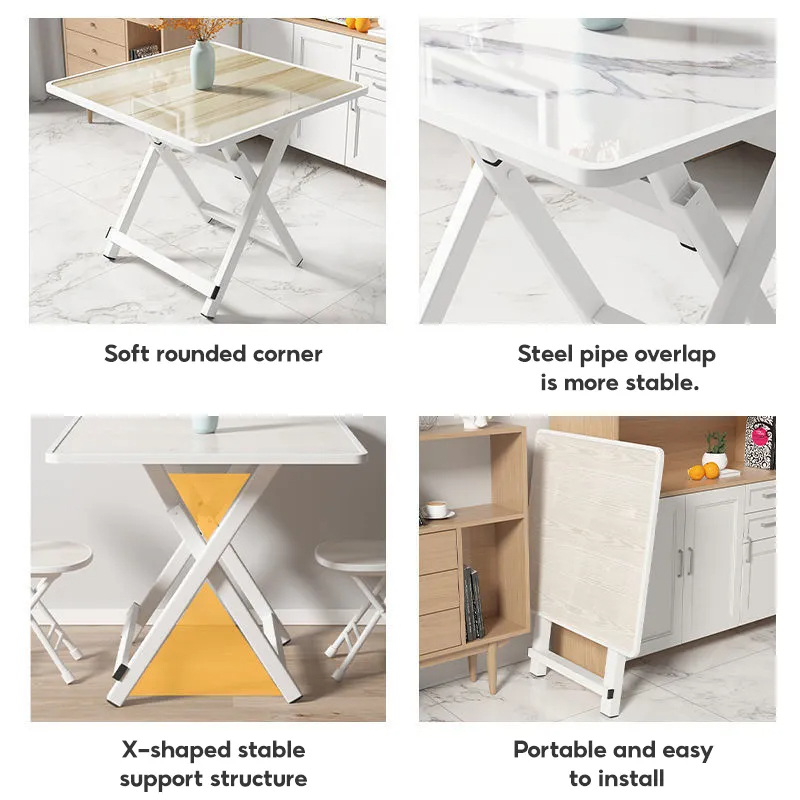 Folding Home Office Desk Table Computer Desk Foldable Furniture Solid Wood + Stainless