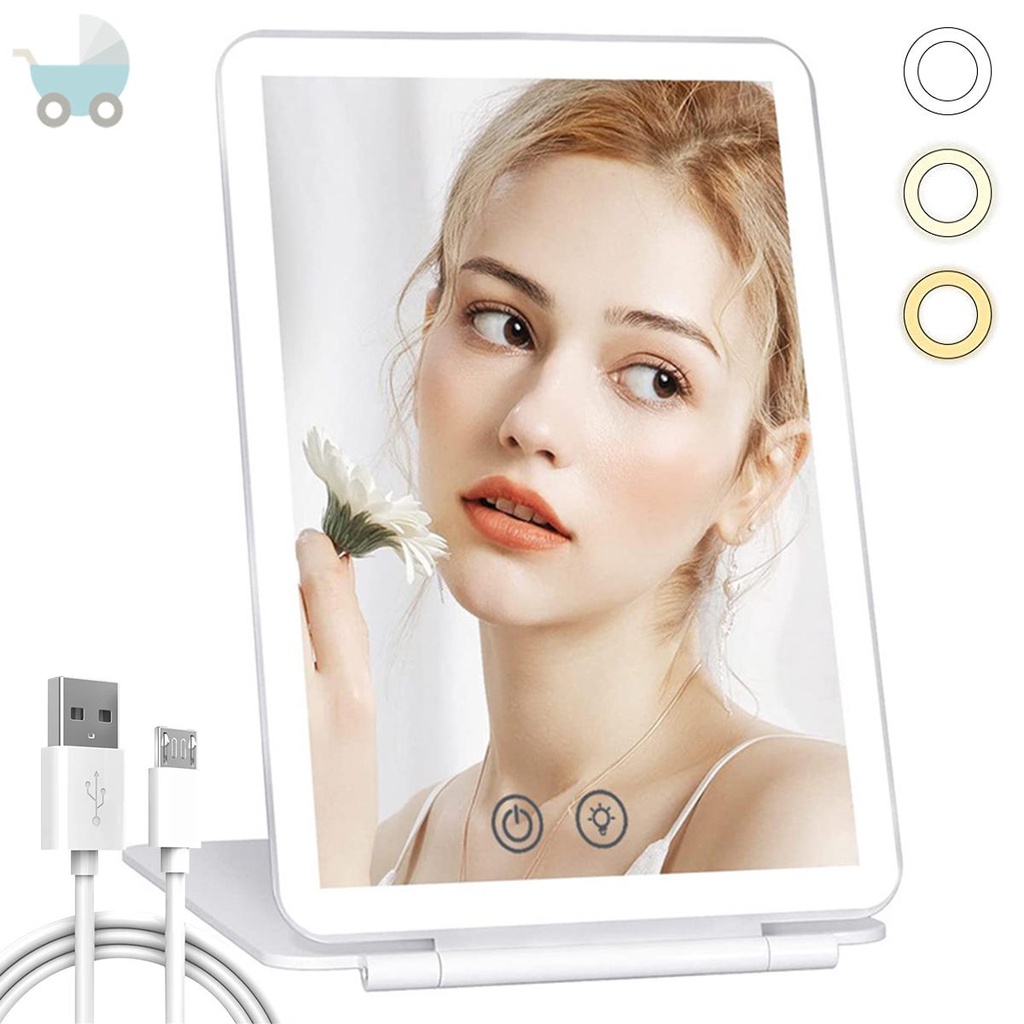 Folding Travel Mirror Lighted Makeup Mirror with 80 LEDs 3 Colors Light Modes USB Rechargeable Mirror SHOPSKC3988