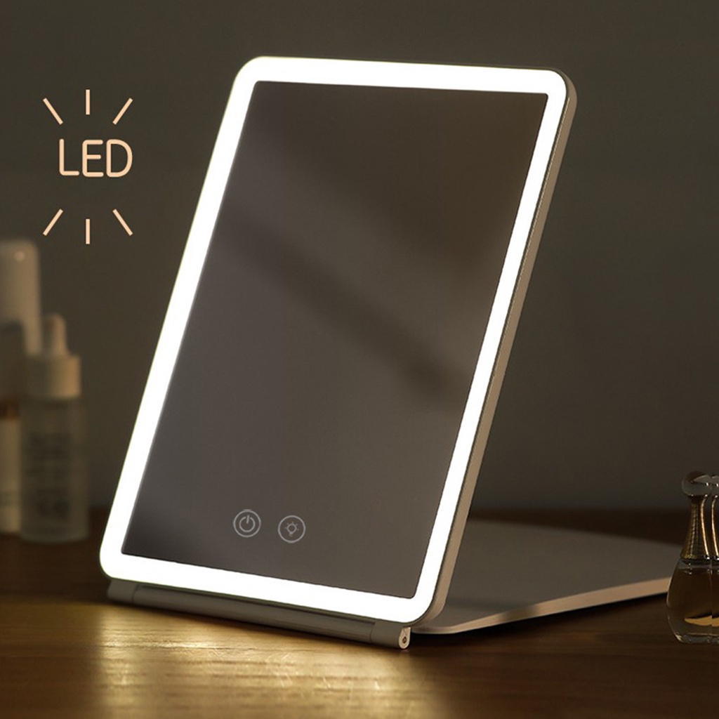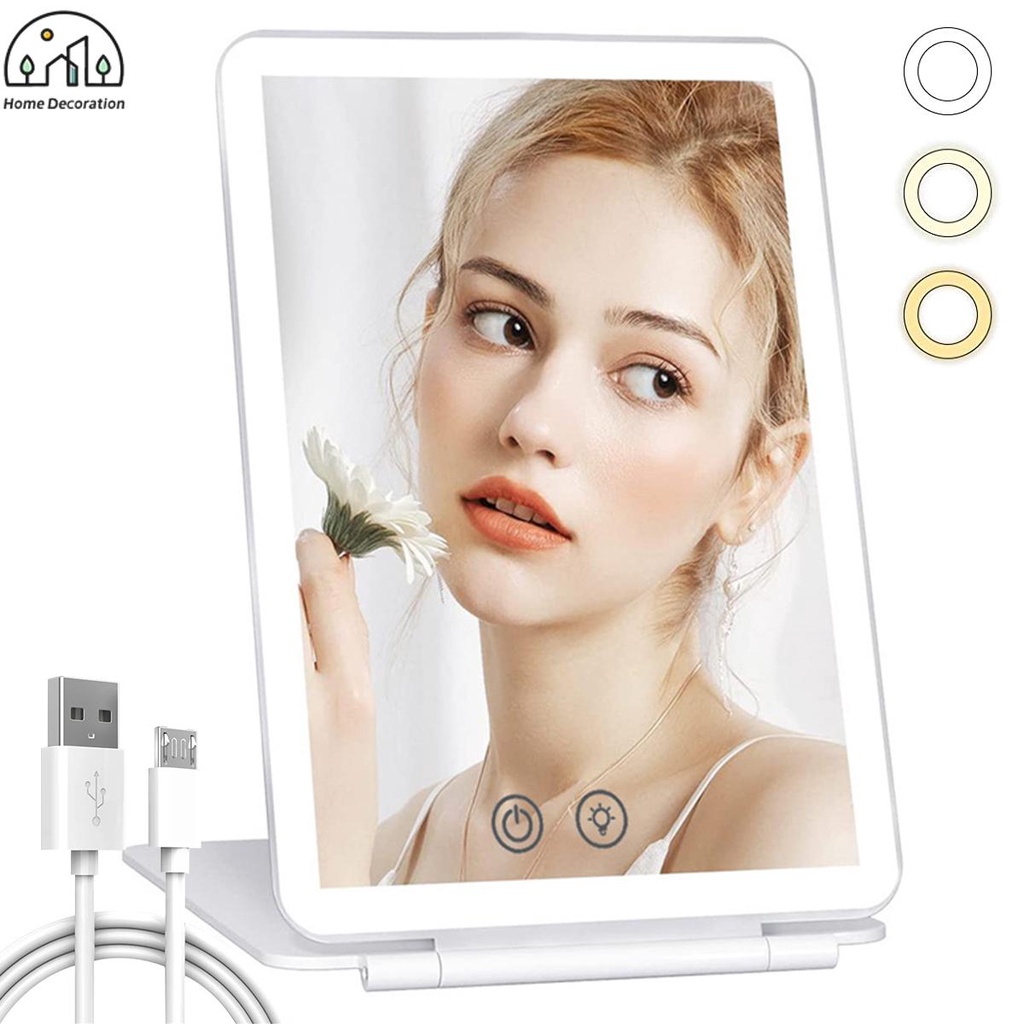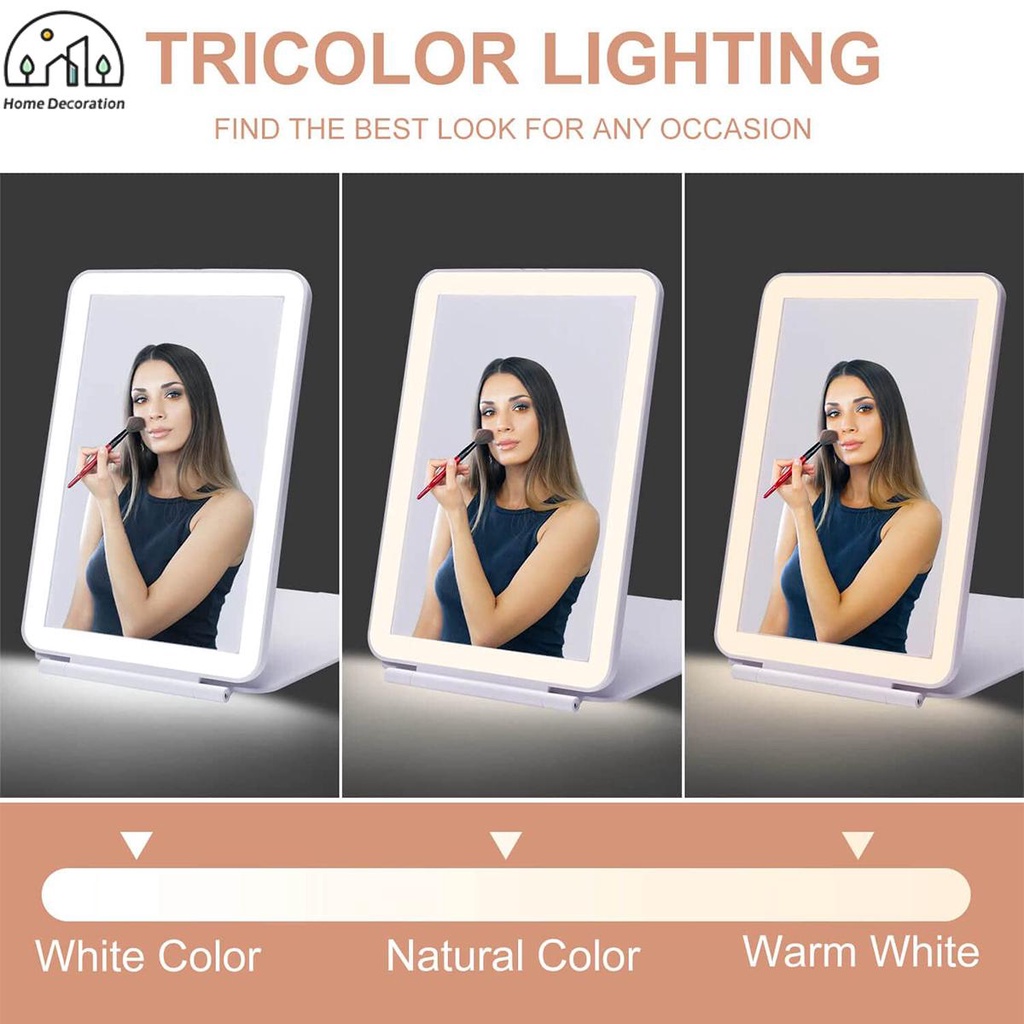 Folding Travel Mirror Lighted Makeup Mirror with 80 LEDs 3 Colors Light Modes USB Rechargeable Mirror