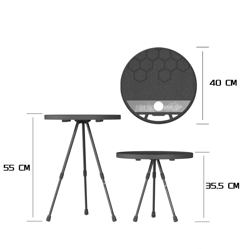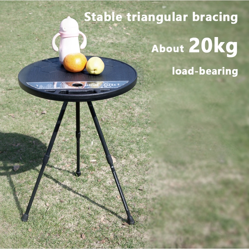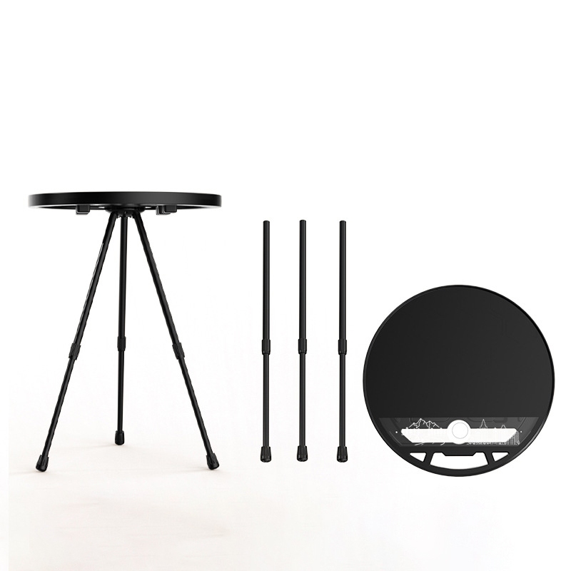 Folding round table Black portable outdoor camping trip multifunctional retractable legs round table