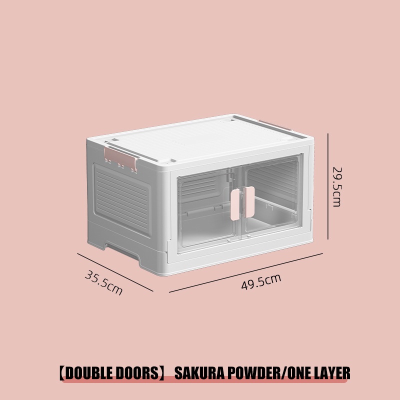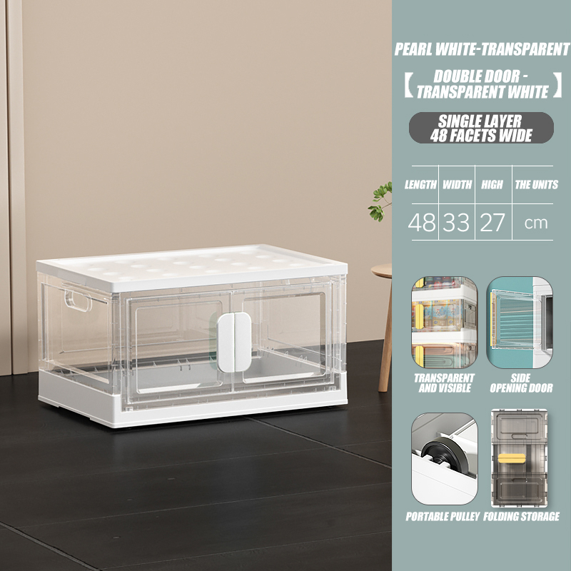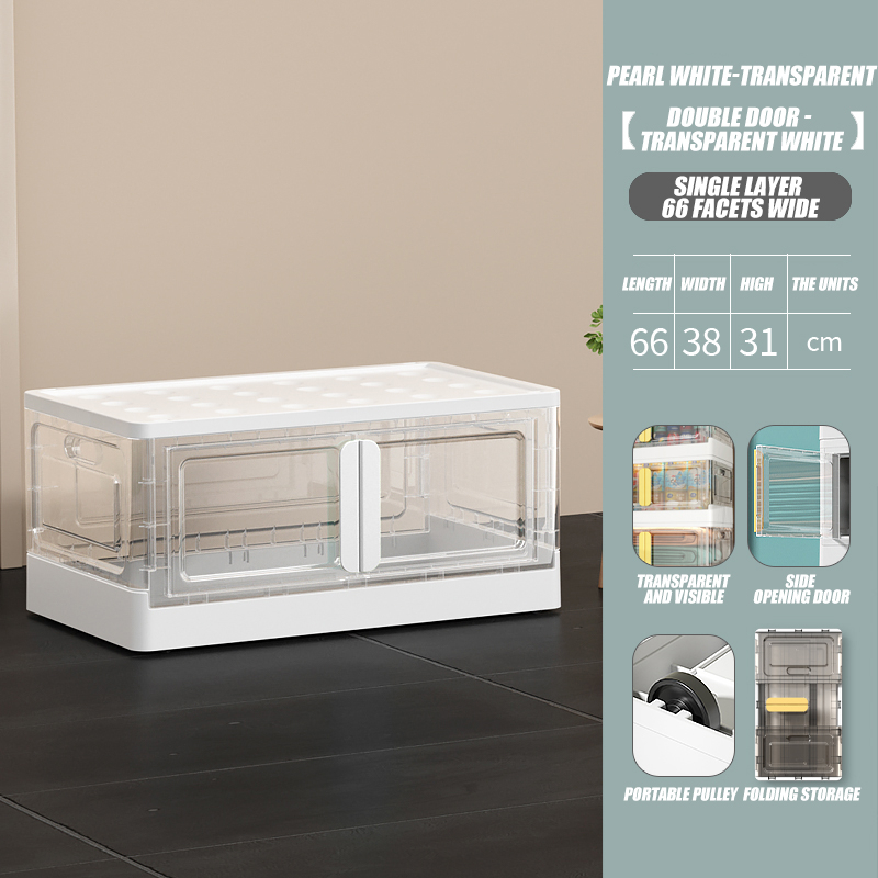 Folding storage box stackable organizer for clothes with wheels clamshell double door transparent st
