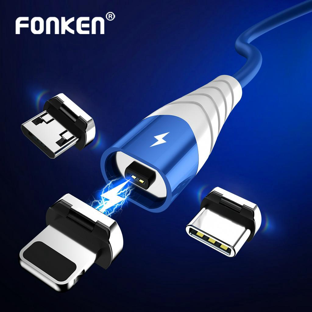 Fonken 2 Pin Magnetic Charger Type C Cable Micro Usb Fast Charging Cord Mobile Phone Quick Charge Wire For Iphone Android