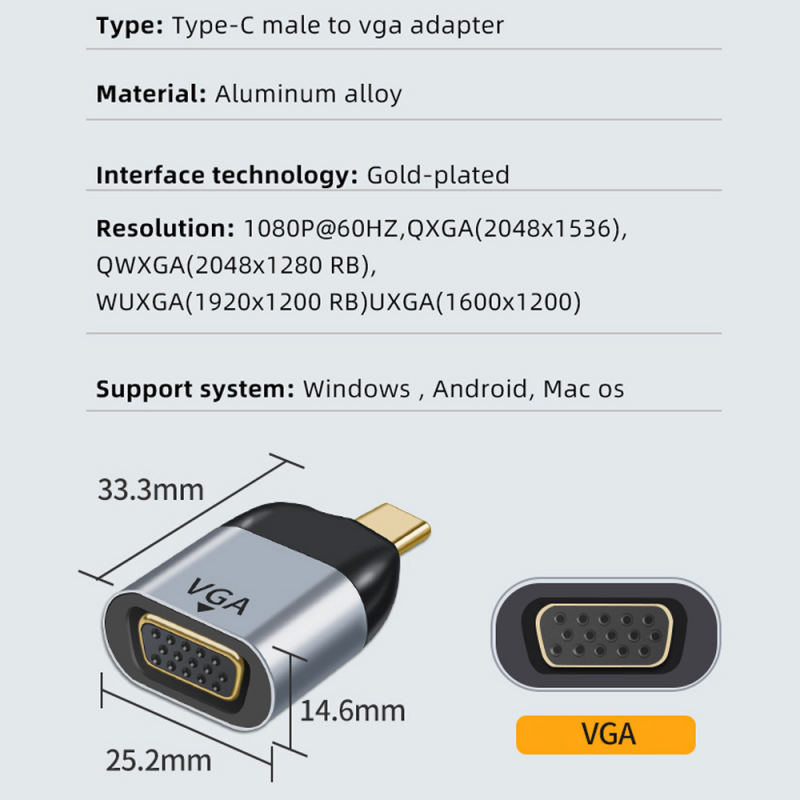 Fonken Converter Otg Micro Usb-C To Vga Type C Hdmi Cable Video Adapter
