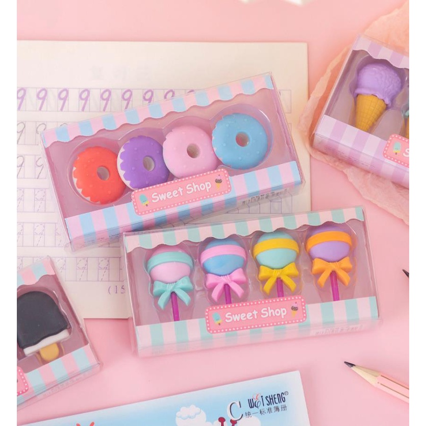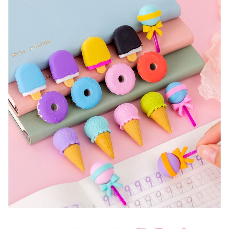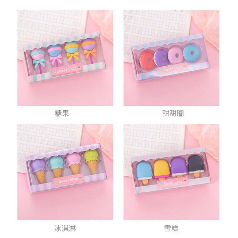 Food Erasers for Kids, 4 Pcs/pack 3D Cute Mini Ice Cream Donut Take Apart Erasers, Cool Fun Puzzle Desk Pet Erasers for Girls