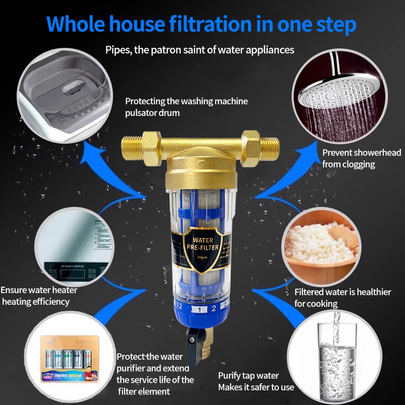 Food Grade Brass Filtration Reusable Whole House Spin-down Pre-Sediment Water Pre-Filter Filter Fre