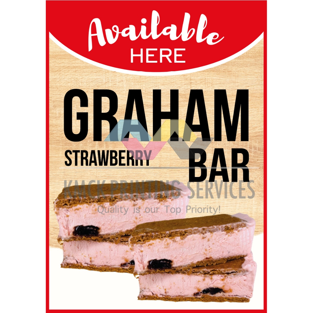 Food Signages Graham Bar Mango Flavor, Cookies and Cream, Strawberry etc. Laminated | Sintra Board