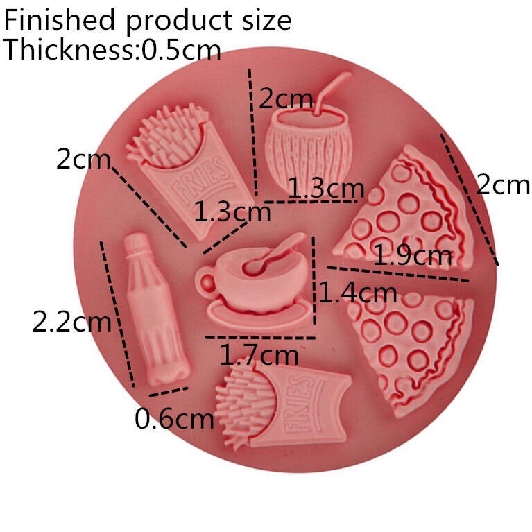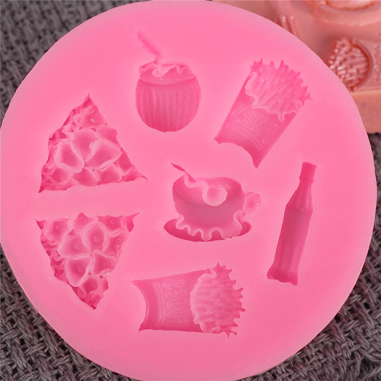 Food Snacks Silicone Molder Pizza Fries Fondant Baking Cake Clay Resin Mould Decoration TJC
