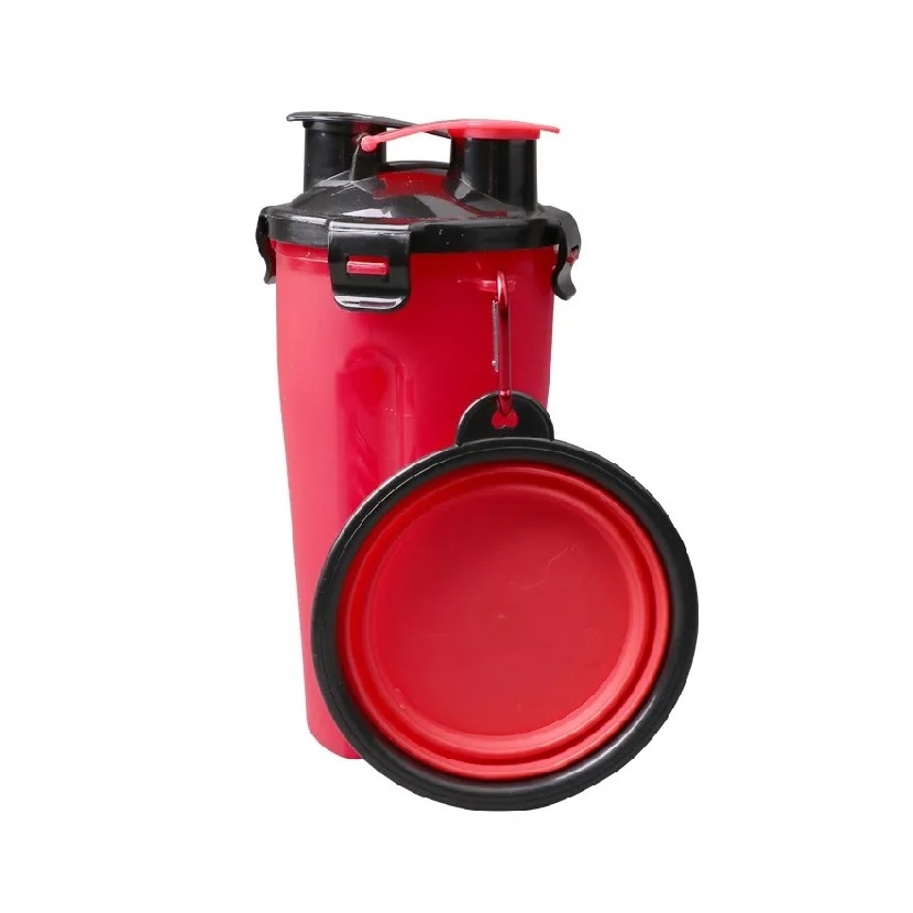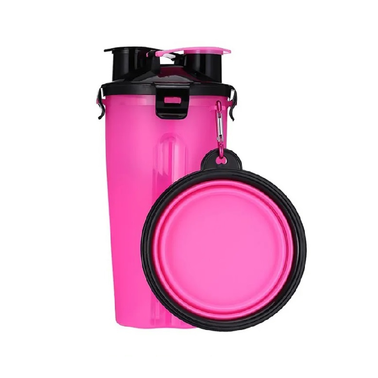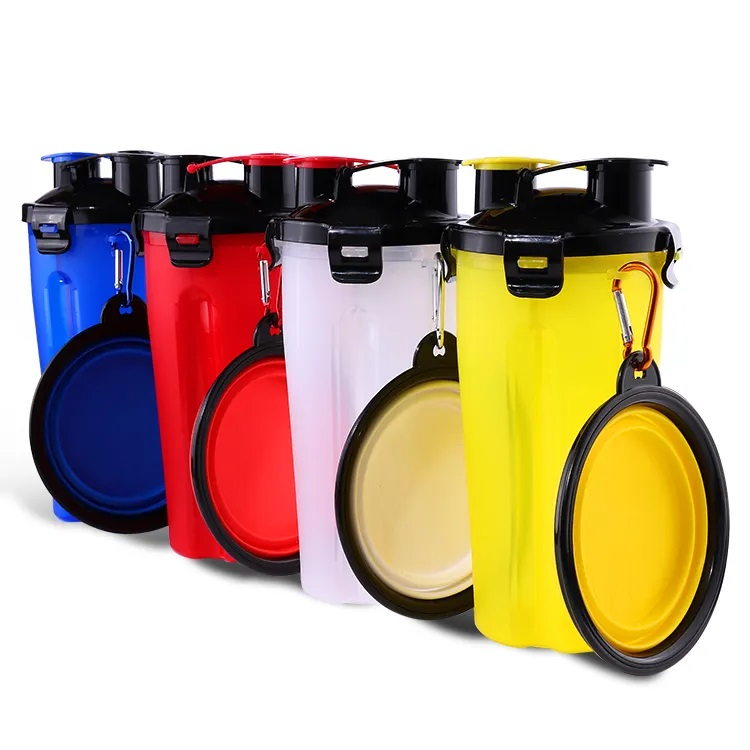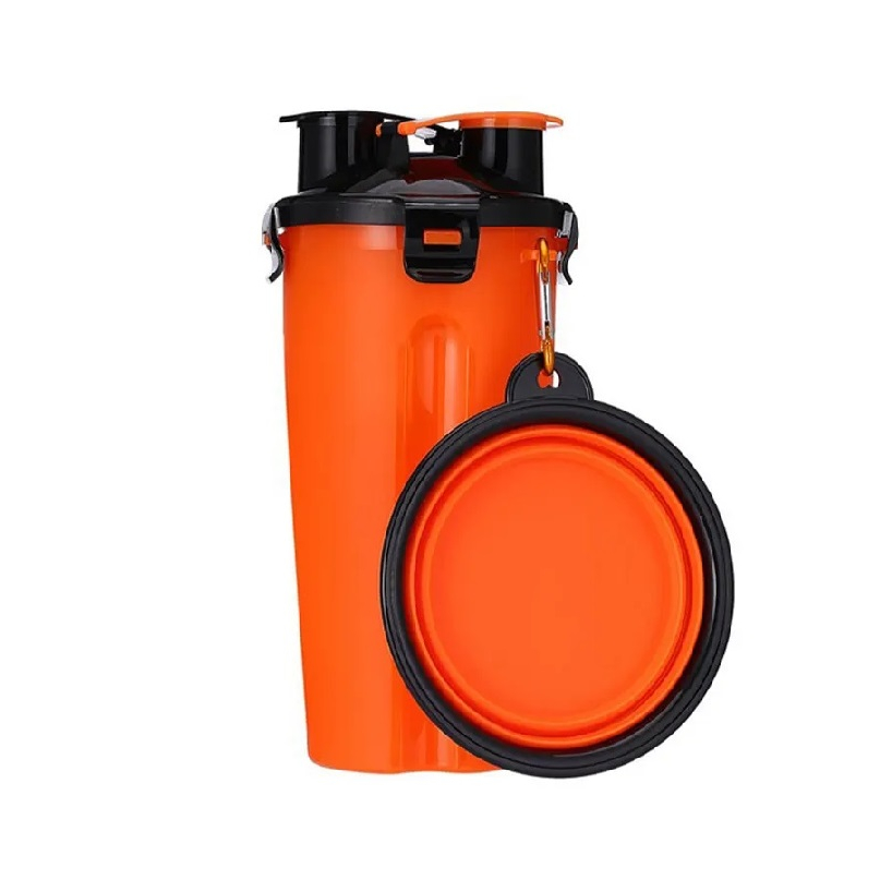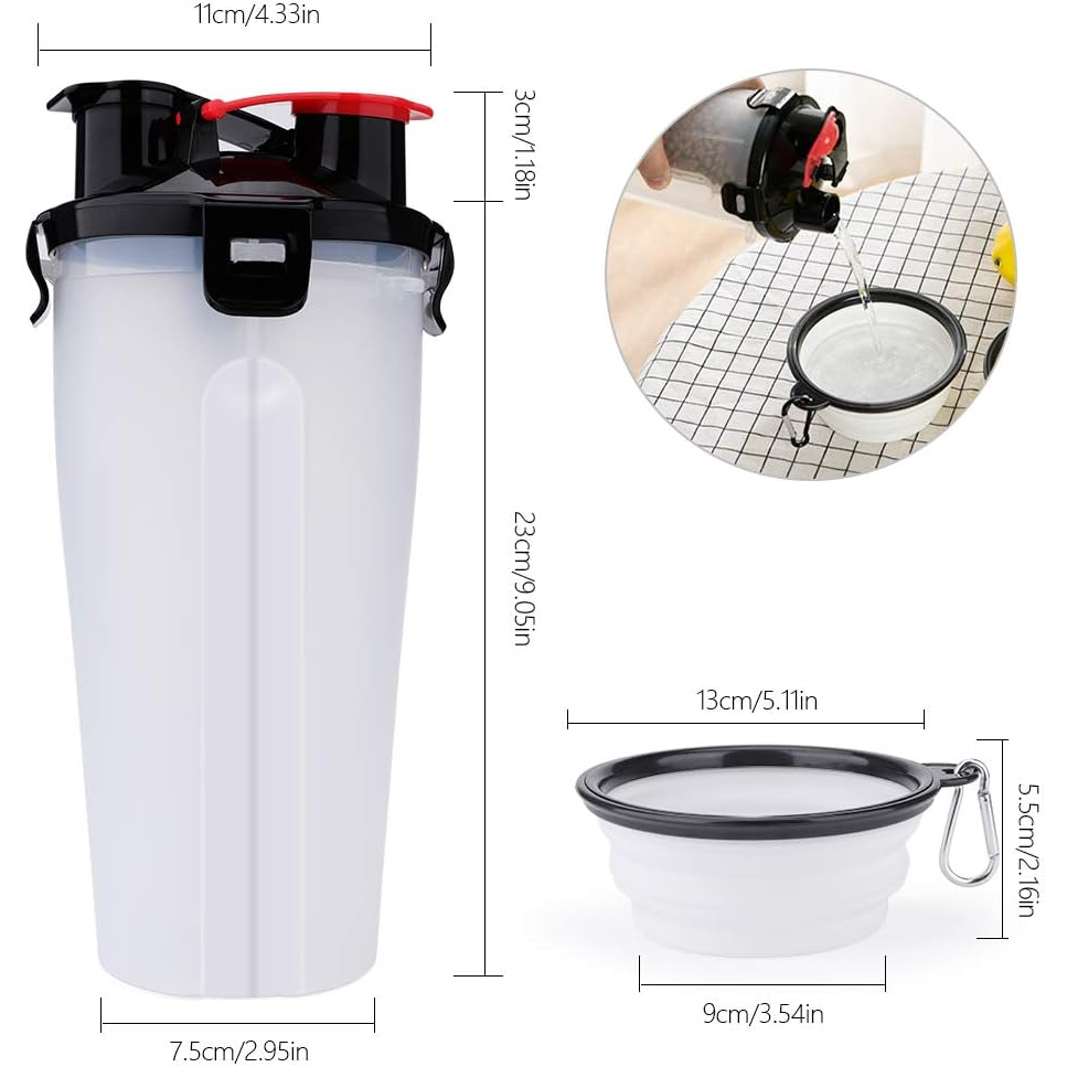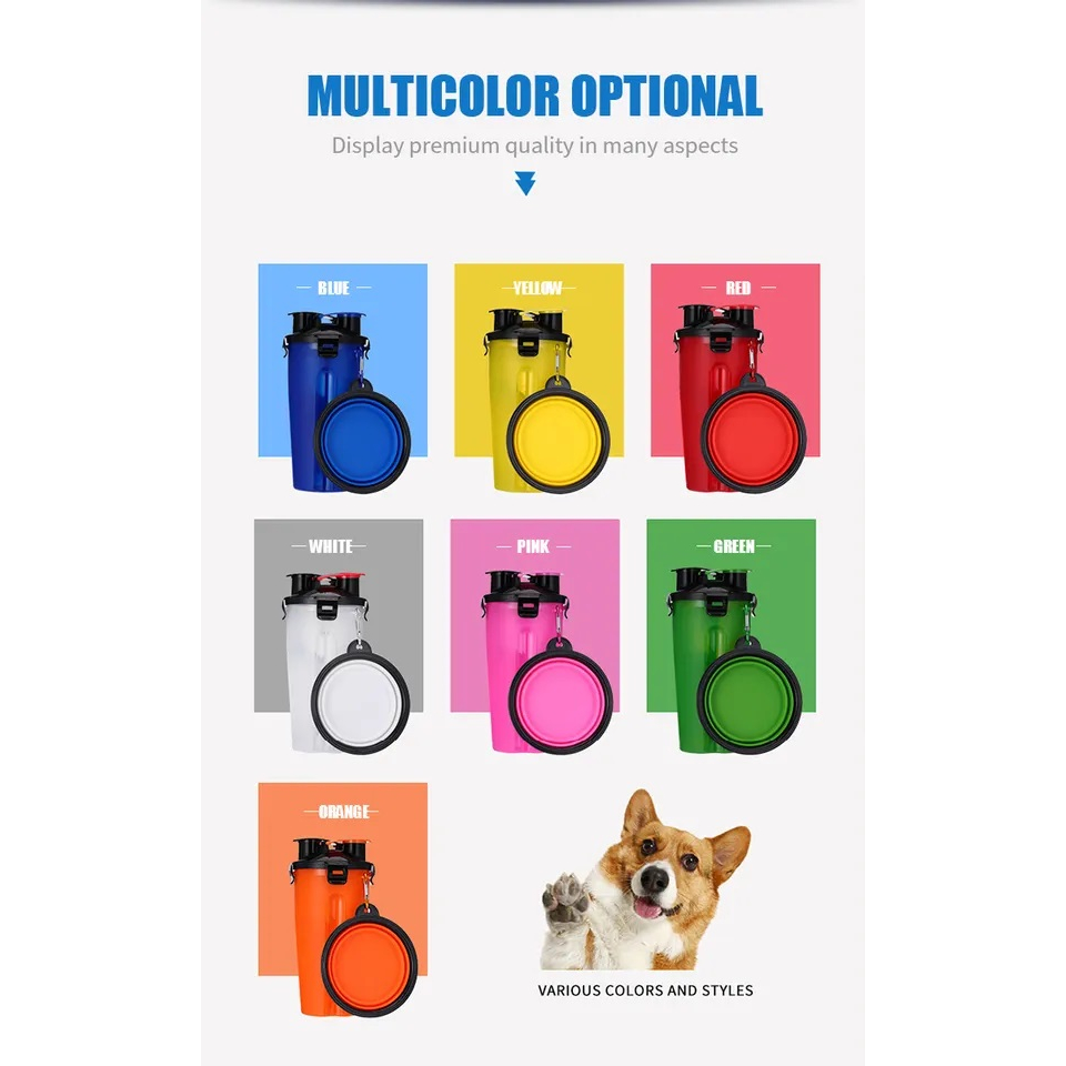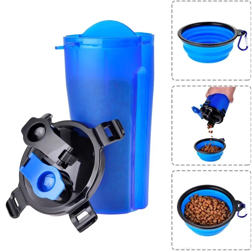 Food and water 2-in-1 portable pet water bottle with double collapsible dog bowl for pet dog
