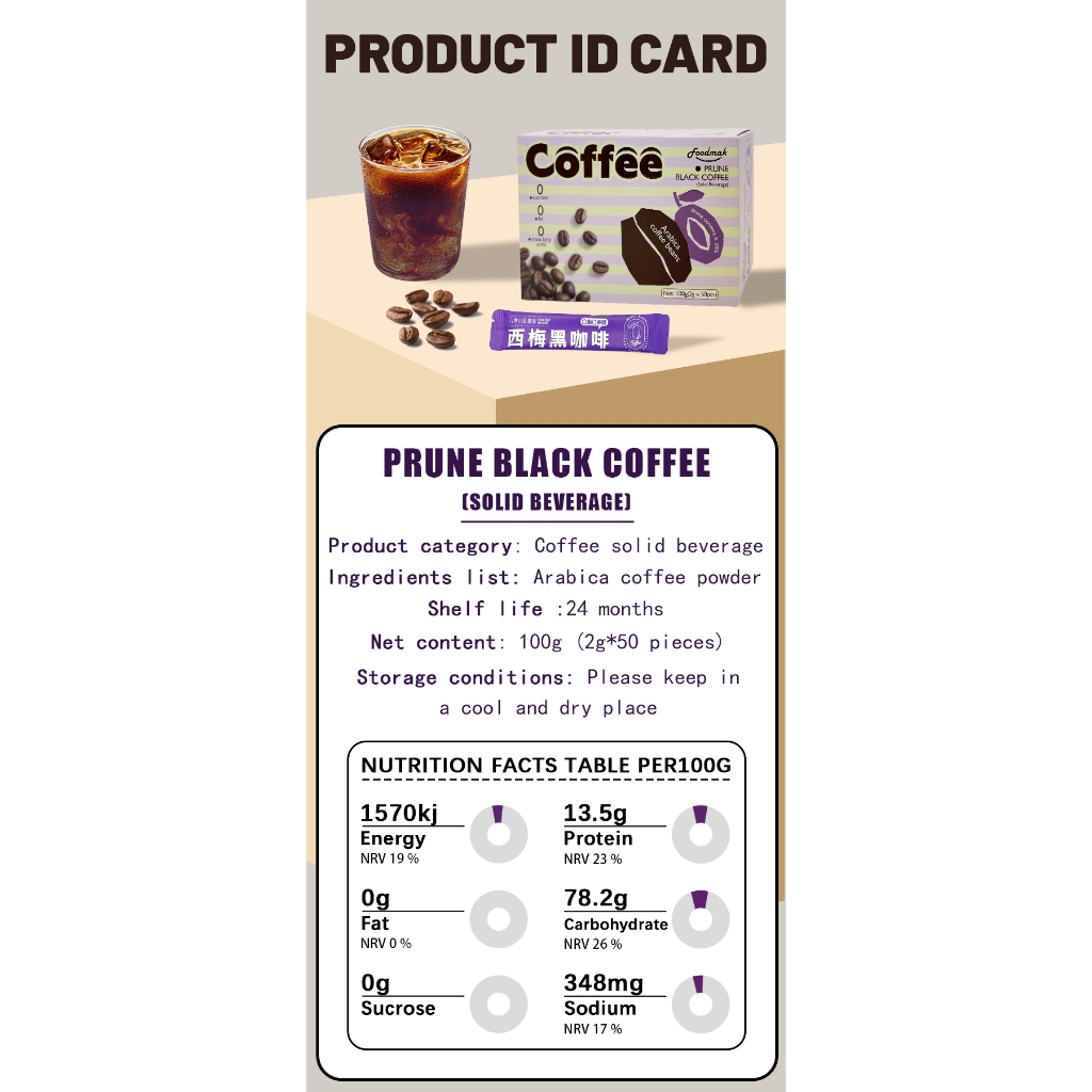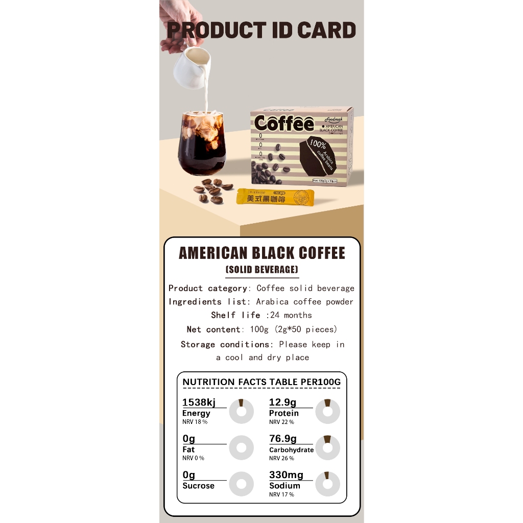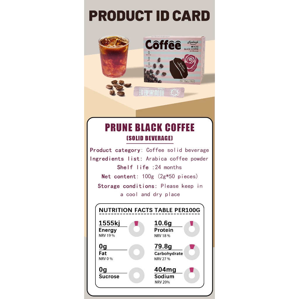 Foodmak American Black Coffee/50 Sticks per Box/Original Flavor/Prune Flavor/Rose Flavor