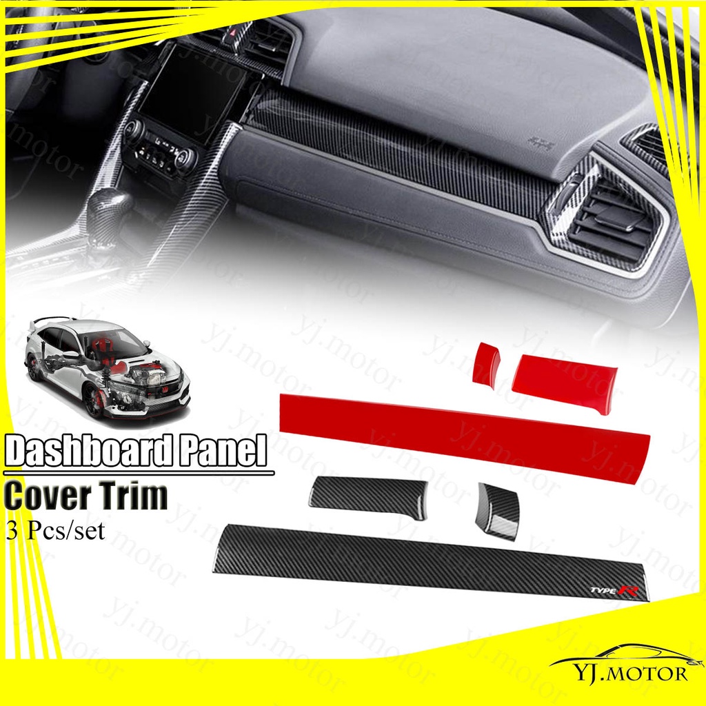 For 2016 - 2021 Honda Civic FC FK Dashboard Panel Cover Interior Decoration Cover Trim Type R Carbon Fiber Design