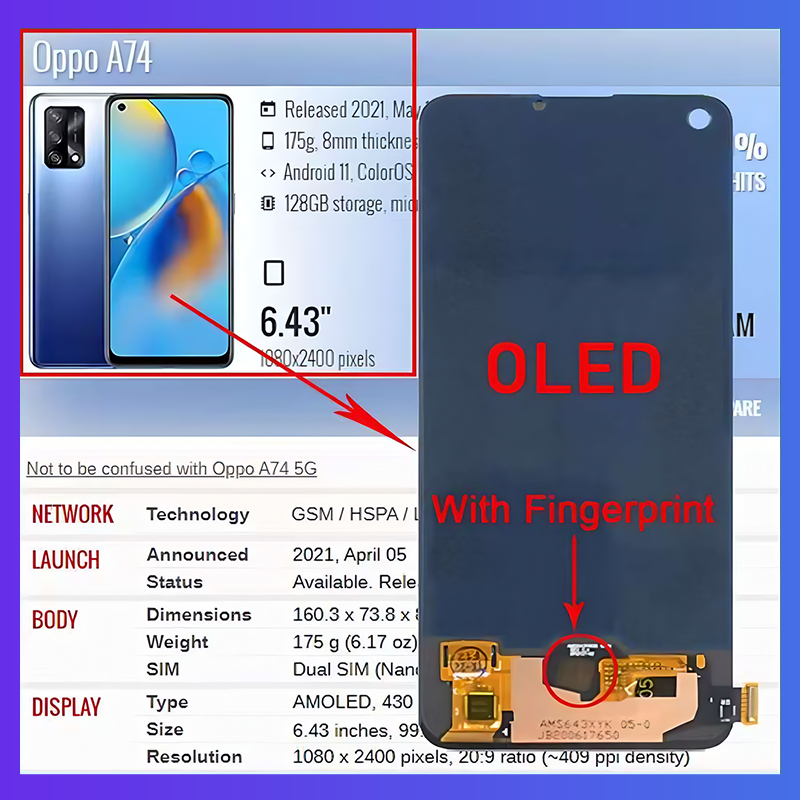 For AMOLED OPPO A74 4G A74 5G LCD Display Touch Screen Replacement