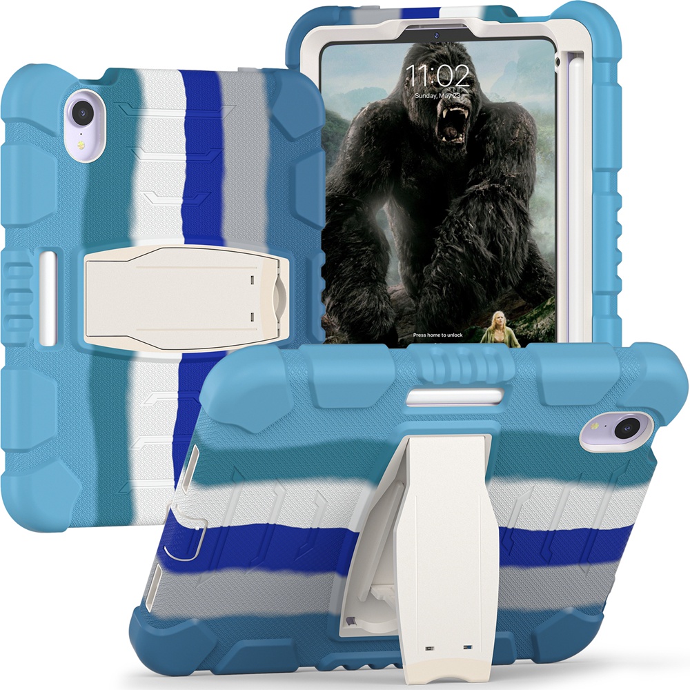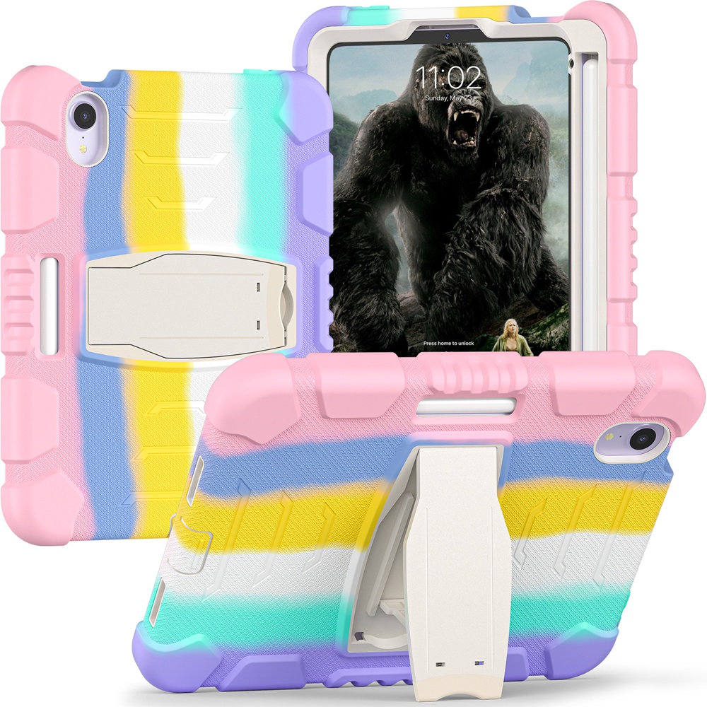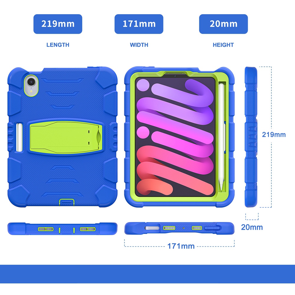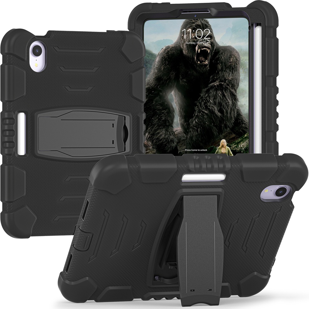 For Apple iPad mini 6 7 6th Gen mini6 mini7 2021 2024 A17 Pro A2567 A2568 A2569 A2993 A2995 Case Kids Safe Armor Shockproof Hard PC Silicon Stand Tablet Cover Casing