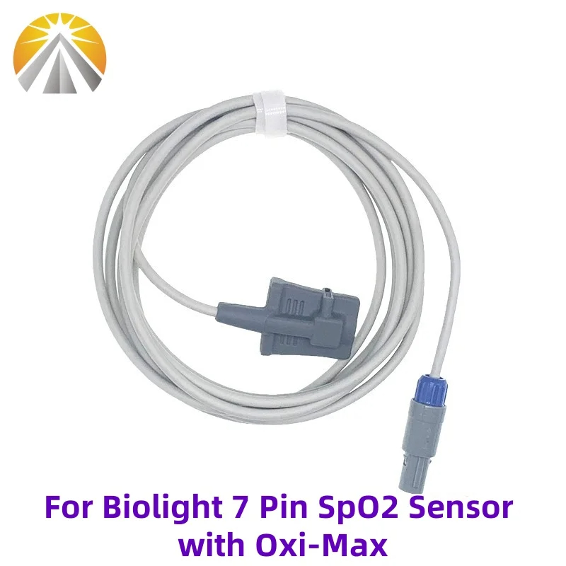 For Biolight 7 Pin SpO2 Sensor 2.5M Monitor Reusable SAO2 Heart Rate Probe Neonate Pediatric Adult Child Use With OXI TECH Tech