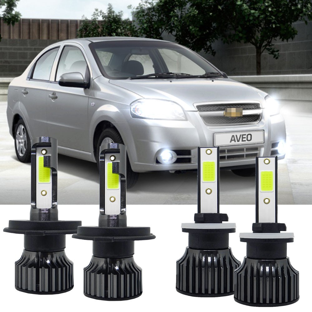 For Chevrolet Aveo 04-08 LED Headlight Kit + Fog Light Bulb