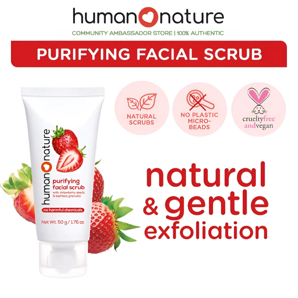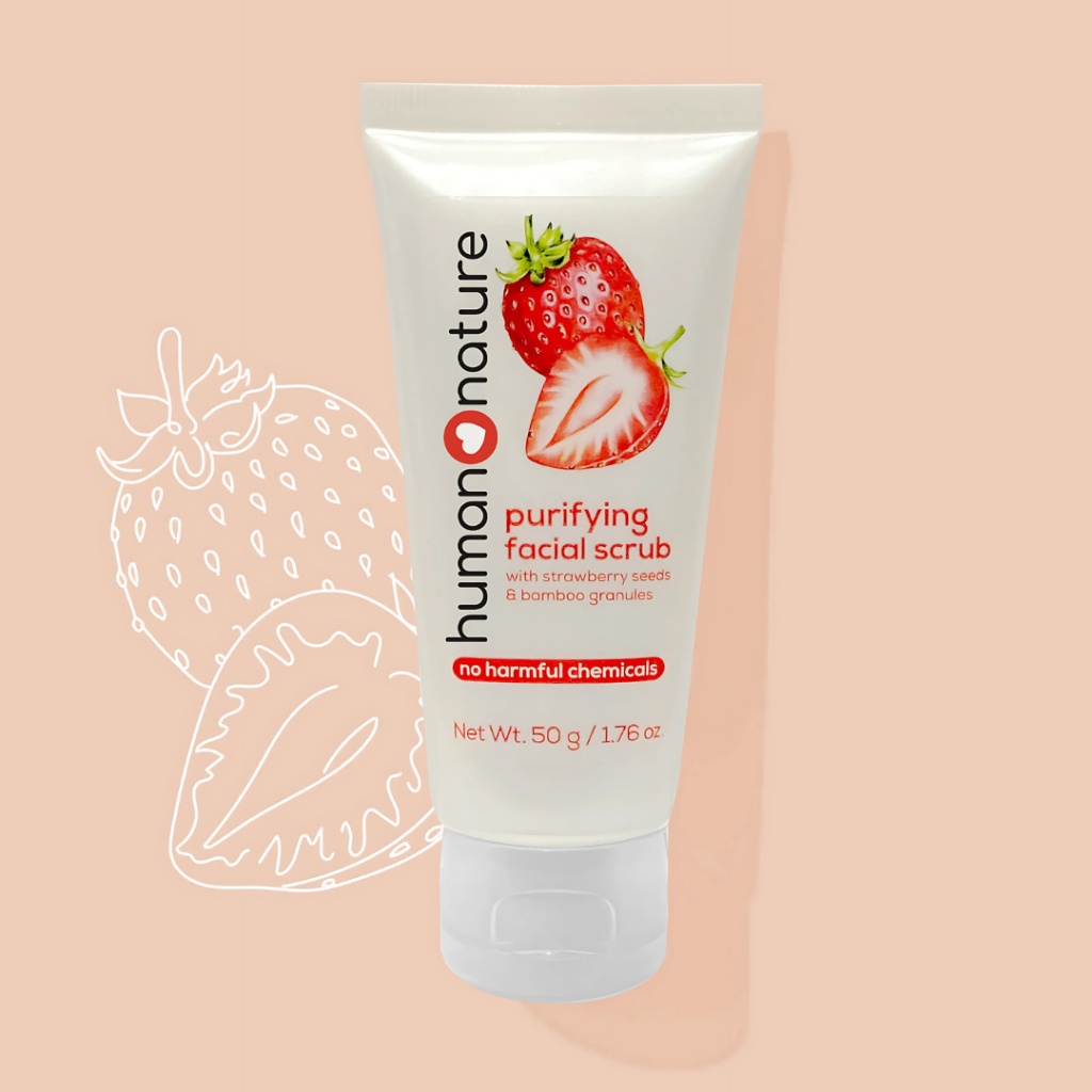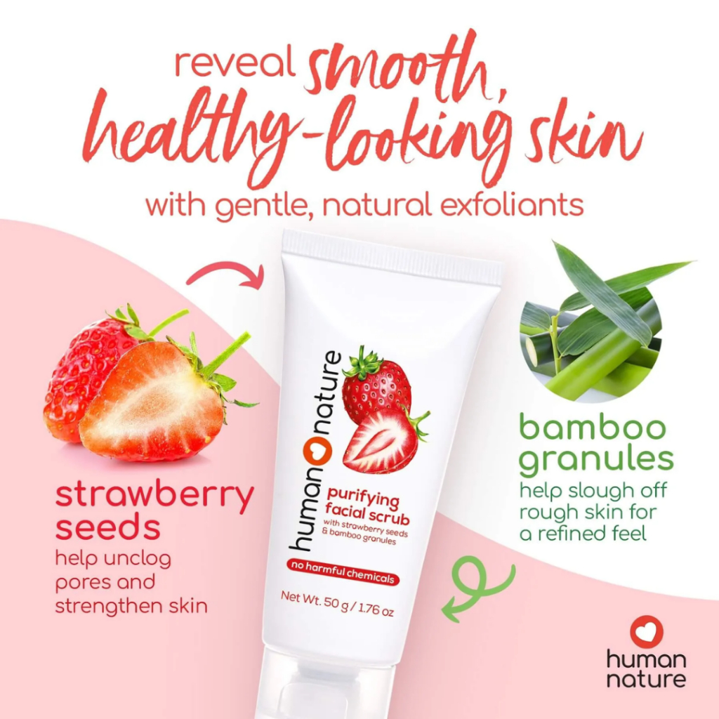 Human Nature Natural Purifying Facial Scrub with Strawberry Seeds and Bamboo Granules 50g