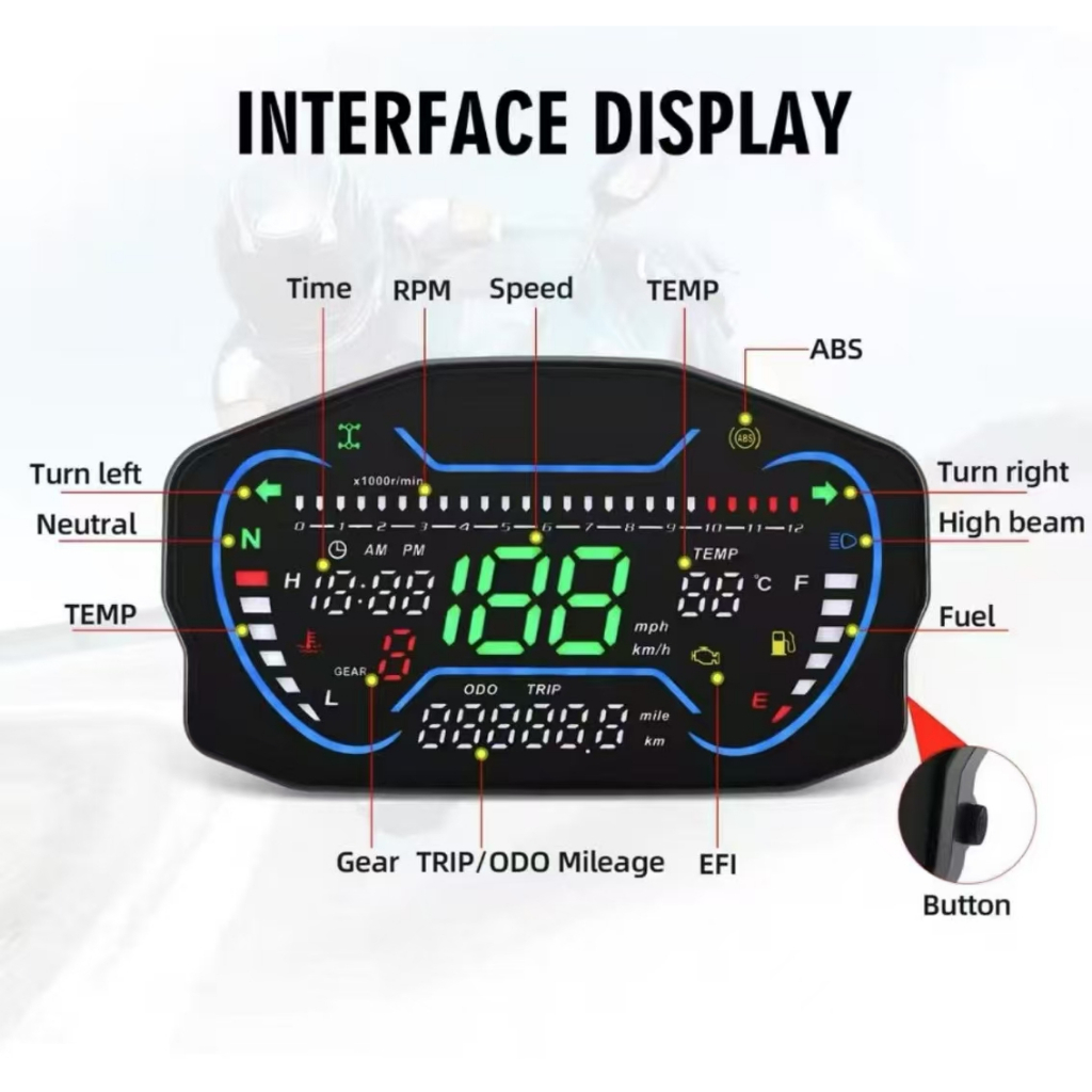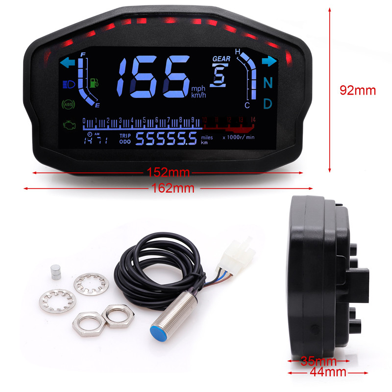 For Ducati Universal Digital Speedometer Digital Meter Odometer Full LCD Meter For 1,2,4 Cylinders W/speed