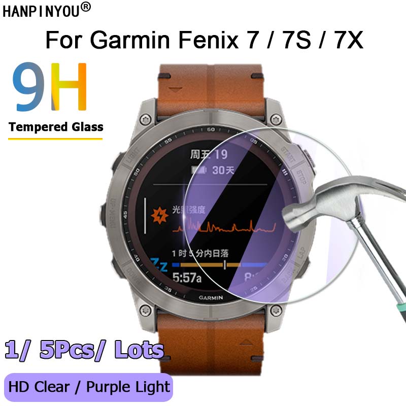 For Garmin Fenix 7 7S 7X Solar SmartWatch Ultra Clear / Anti Purple Light 2.5D Tempered Glass Film Screen Protector