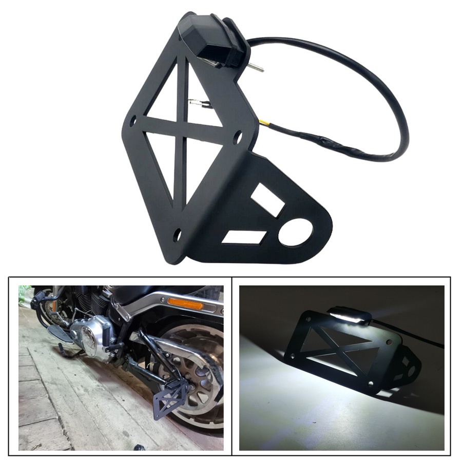 For Harley Sportsters Bobber Chopper 1 Set Universal LED Motorcycle License Plate Light Side Mount Registration Bracket Holder
